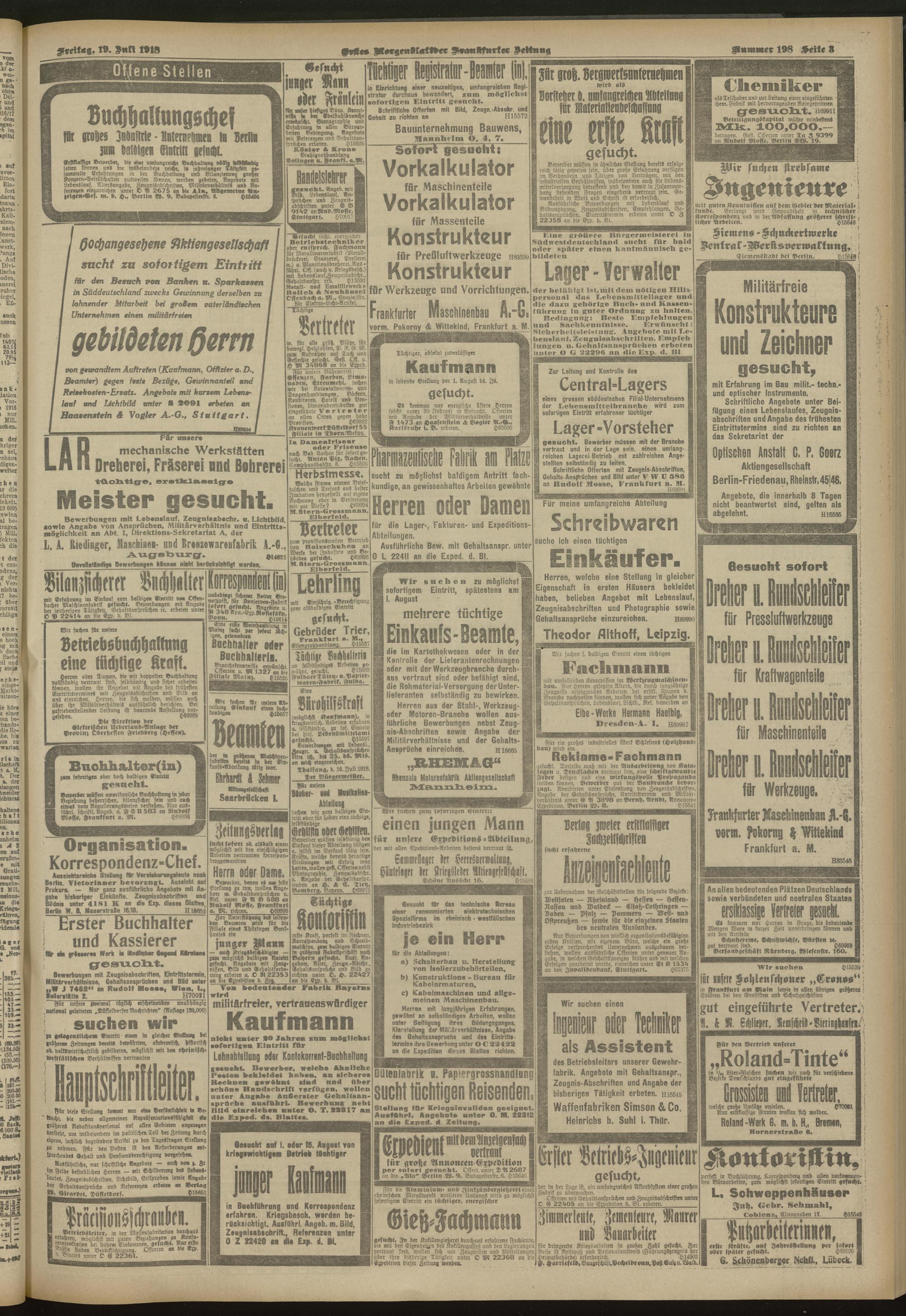 19.07.1918 = Nr. 198. Erstes Morgenblatt