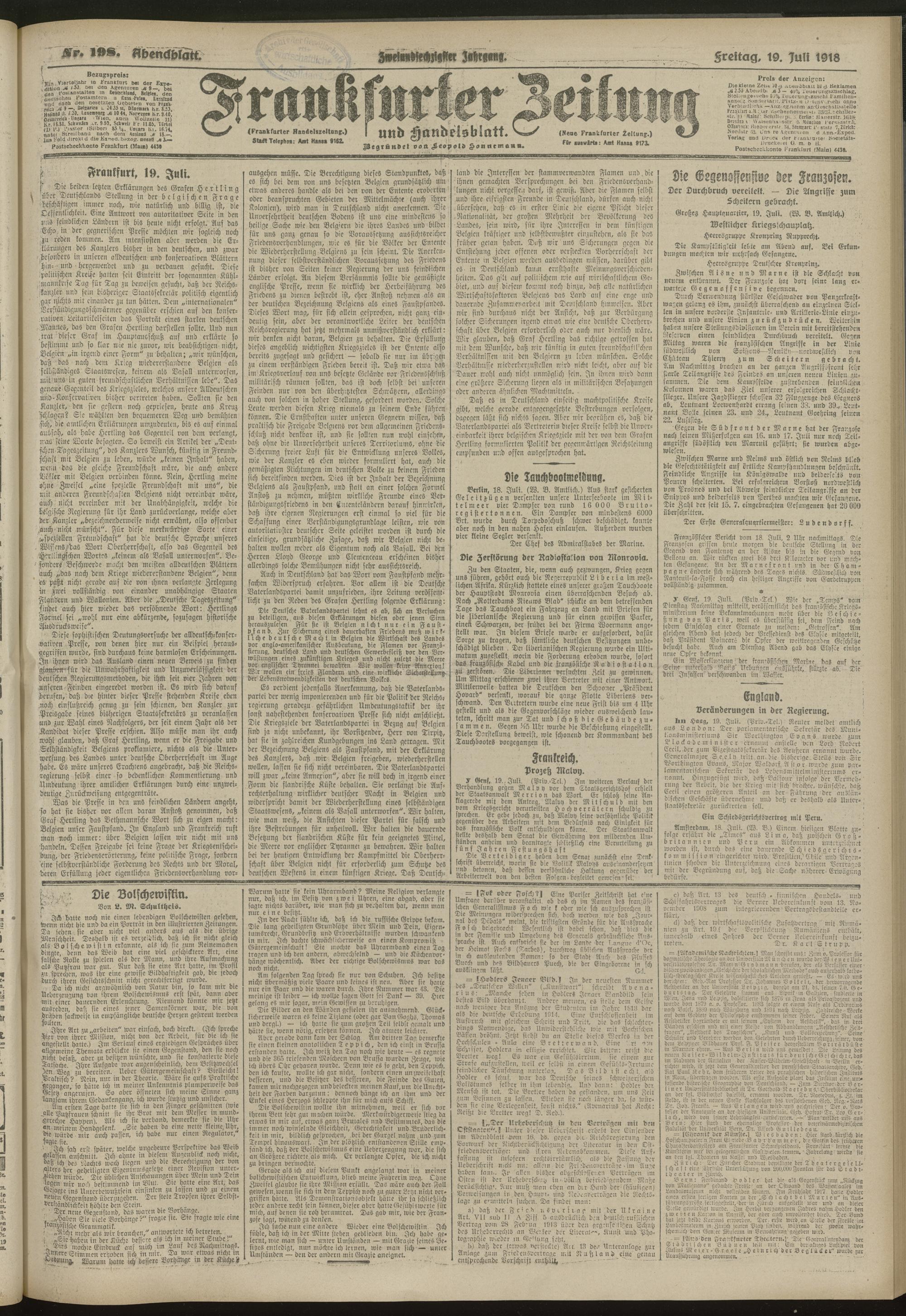 19.07.1918 = Nr. 198. Abendblatt