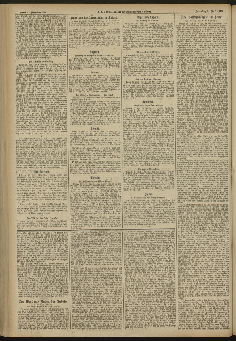21.07.1918 = Nr. 200. Erstes Morgenblatt