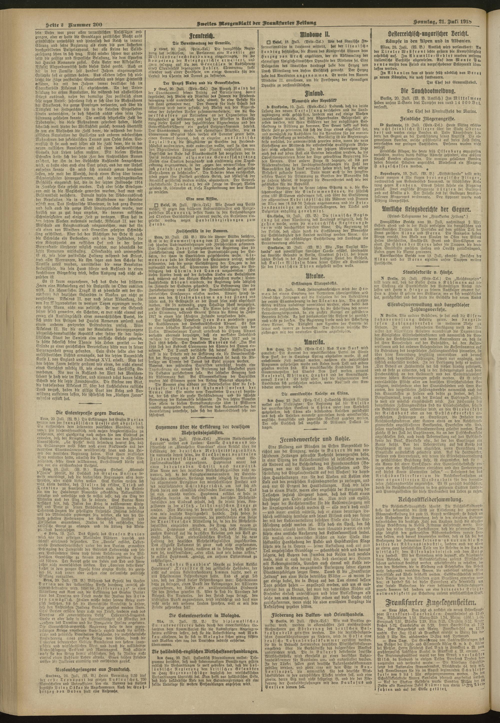 21.07.1918 = Nr. 200. Zweites Morgenblatt