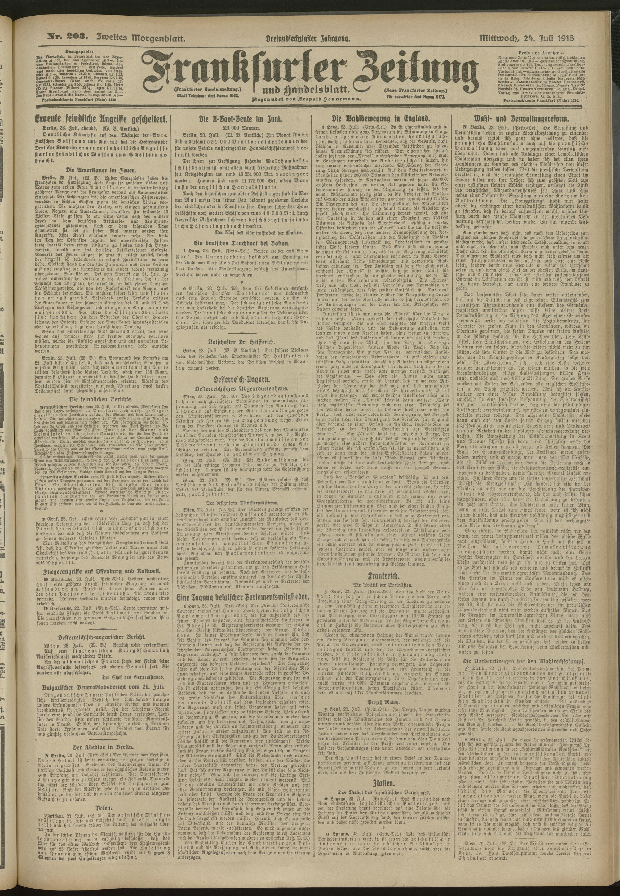 24.07.1918 = Nr. 203. Zweites Morgenblatt