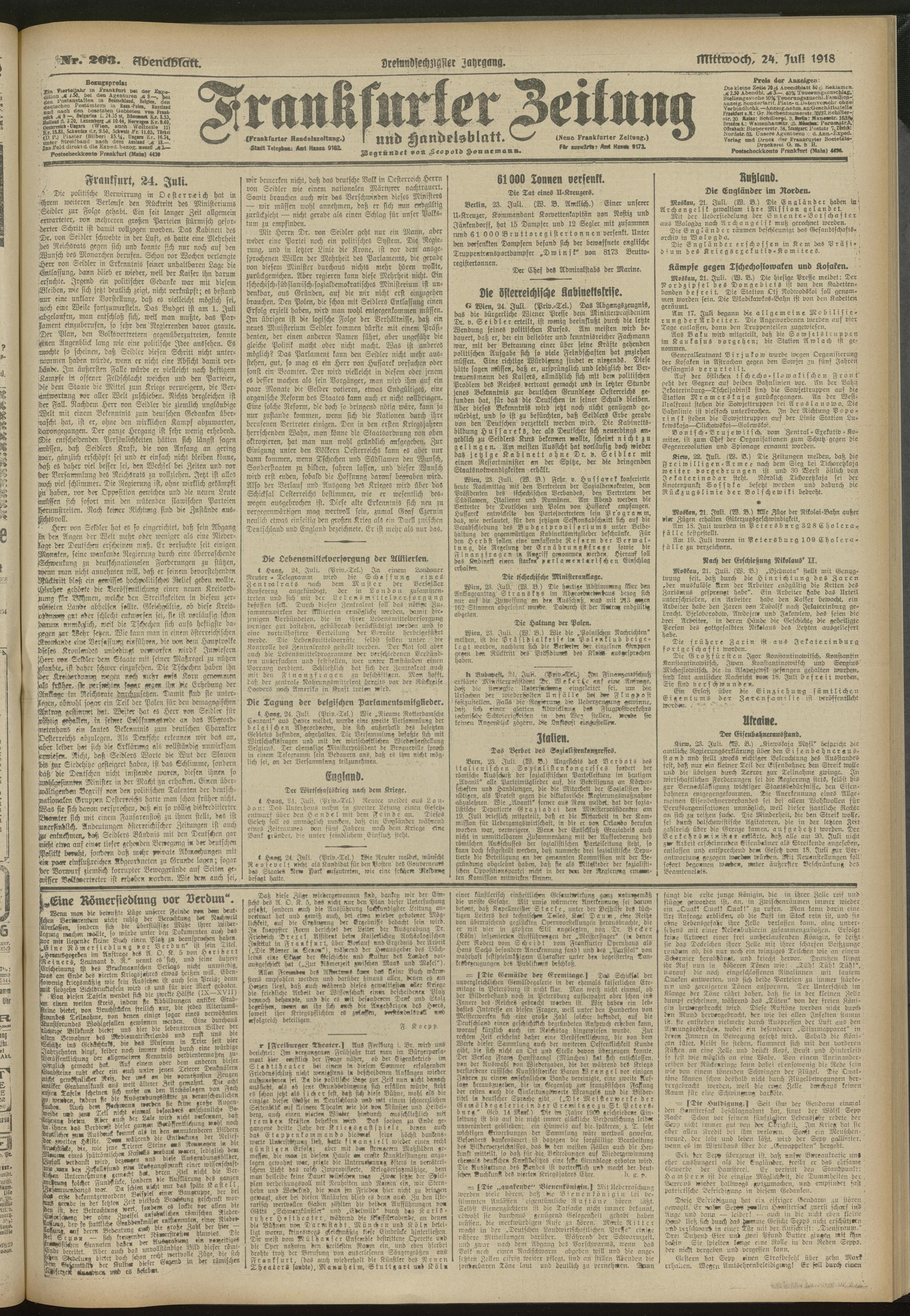 24.07.1918 = Nr. 203. Abendblatt