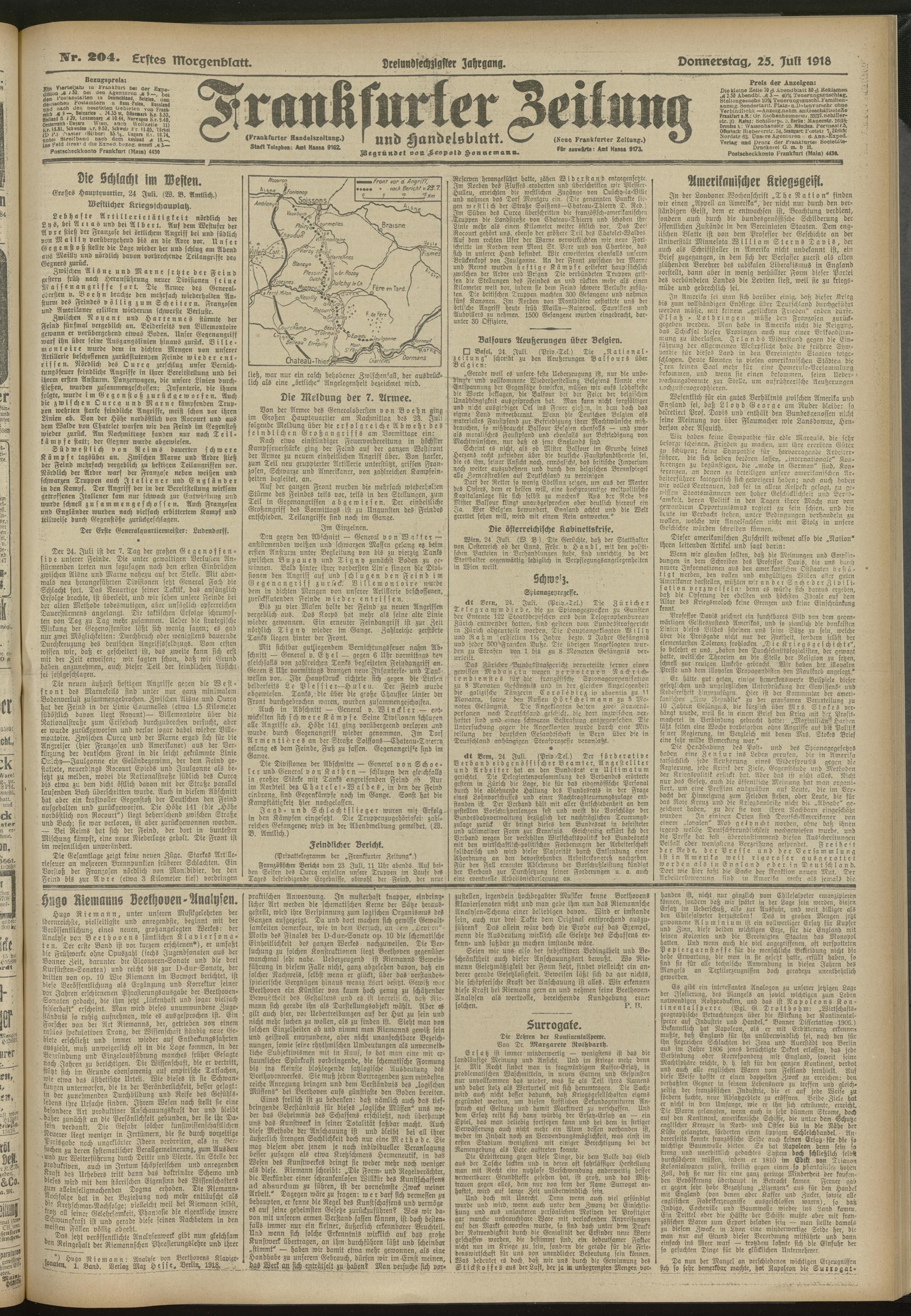 25.07.1918 = Nr. 204. Erstes Morgenblatt