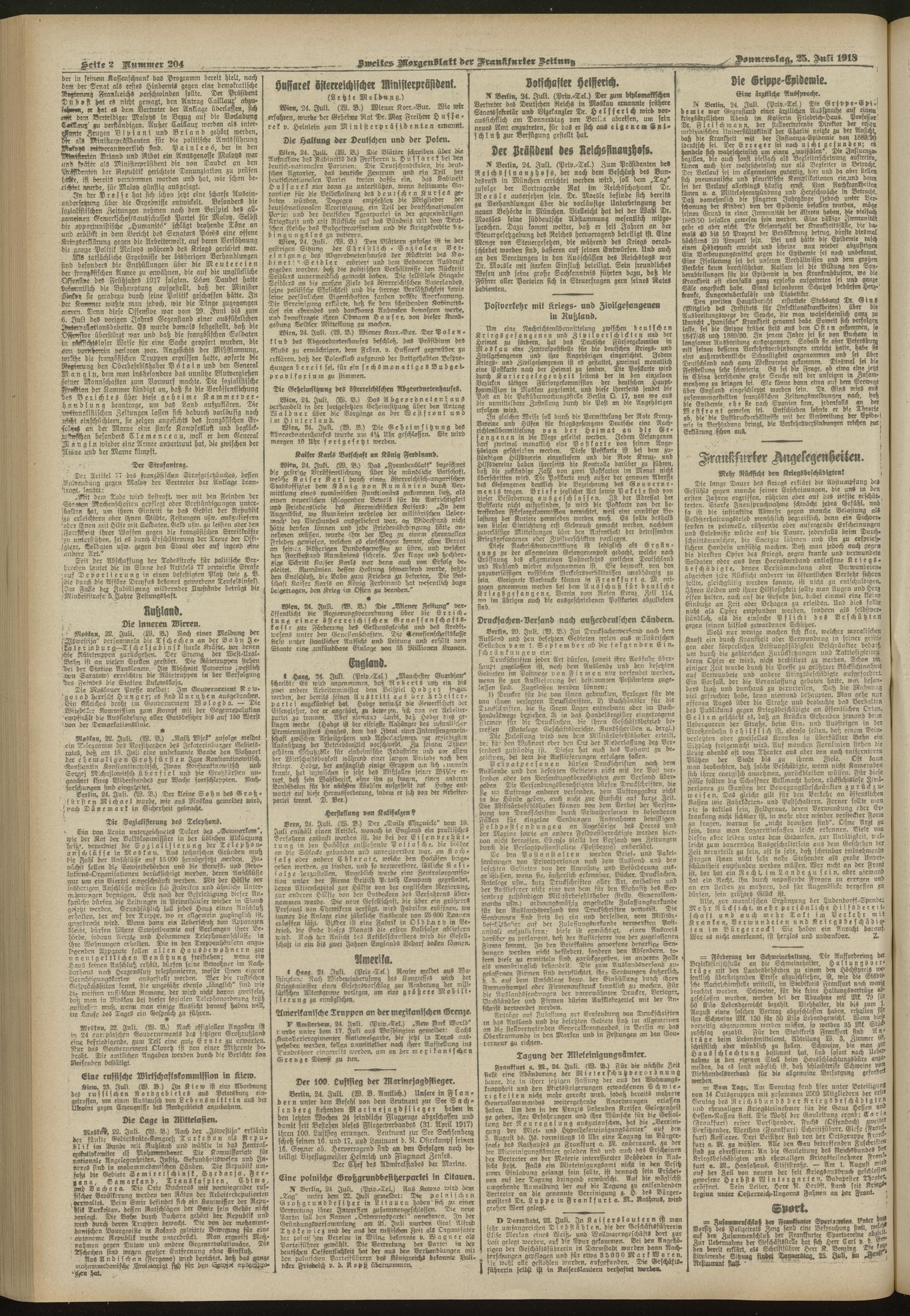 25.07.1918 = Nr. 204. Zweites Morgenblatt