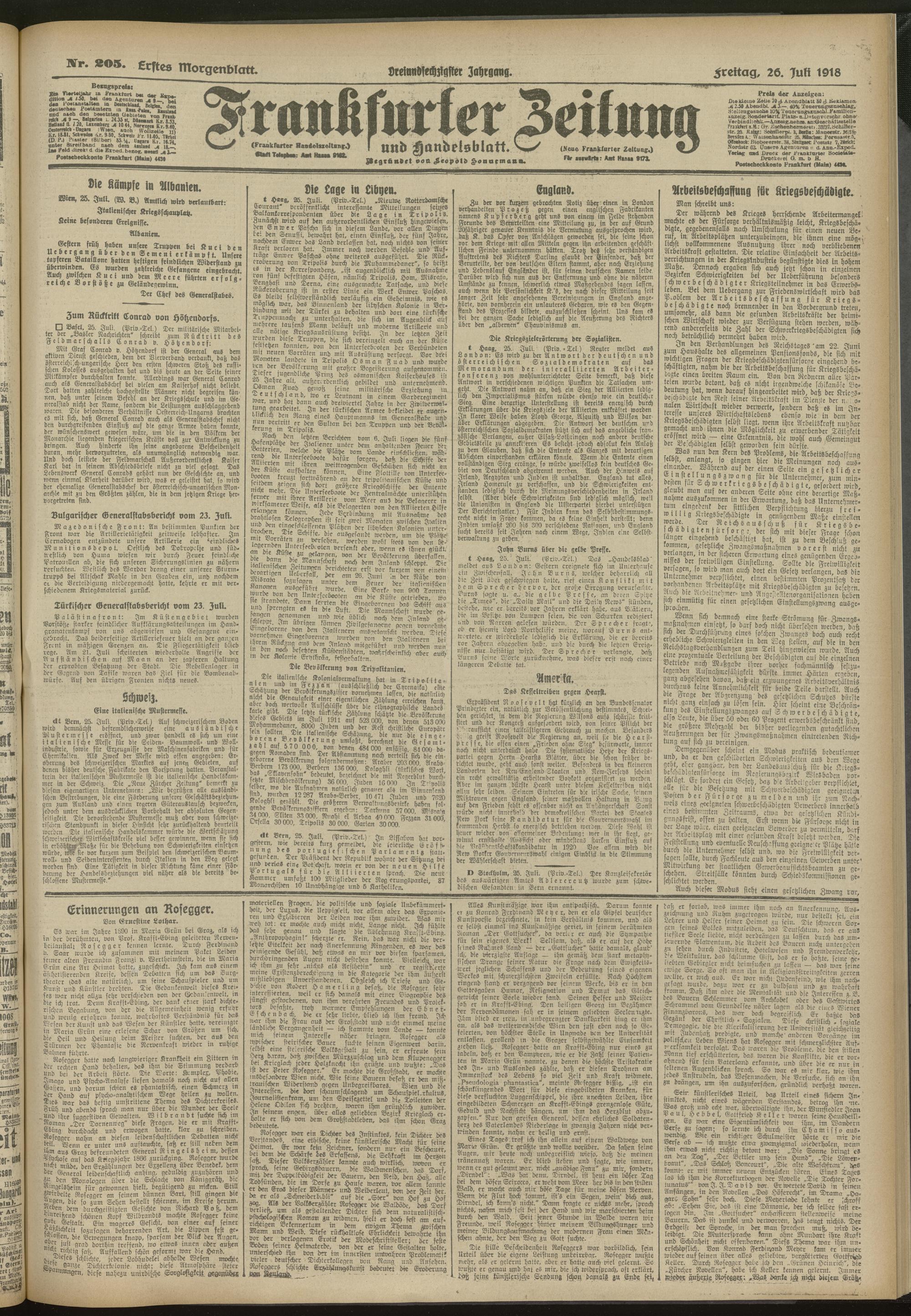 26.07.1918 = Nr. 205. Erstes Morgenblatt