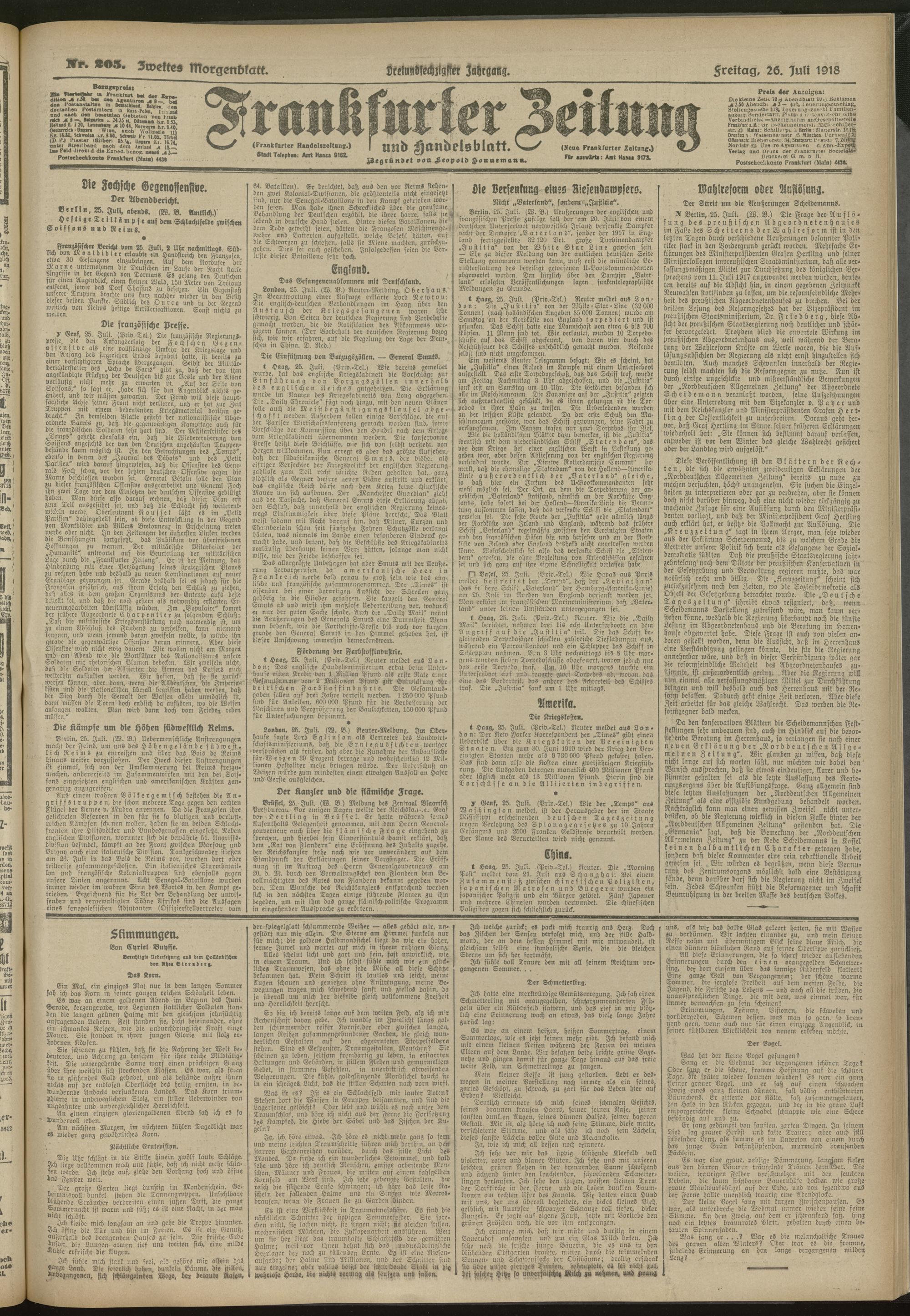26.07.1918 = Nr. 205. Zweites Morgenblatt