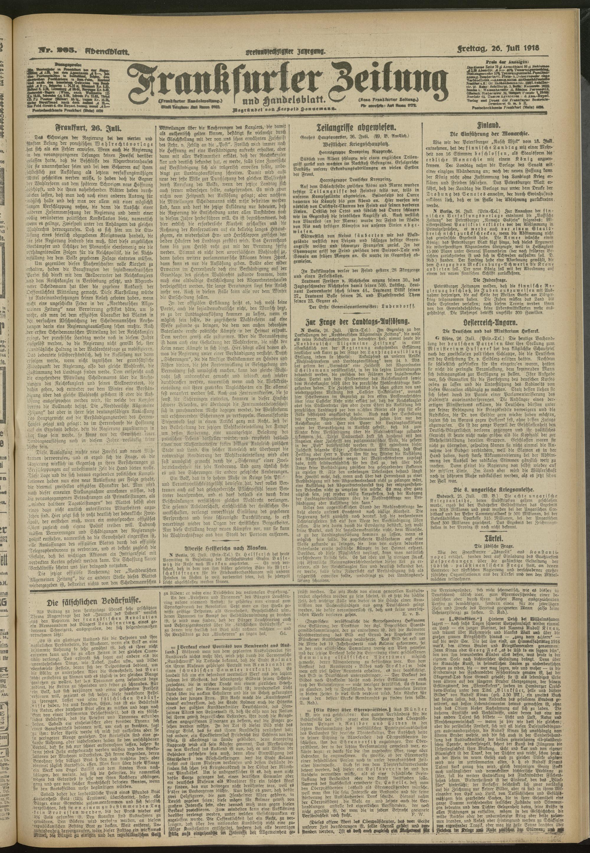 26.07.1918 = Nr. 205. Abendblatt