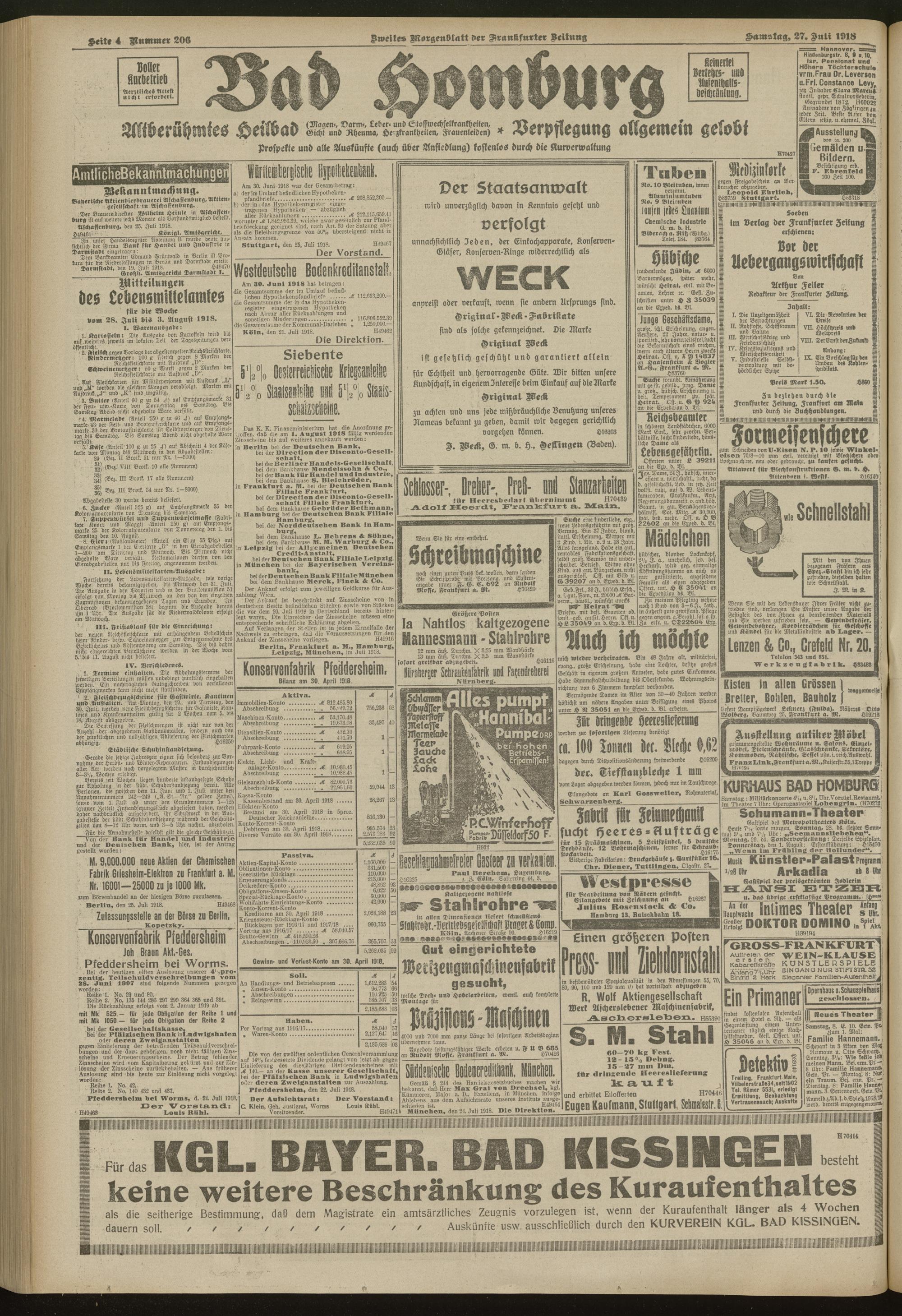 27.07.1918 = Nr. 206. Zweites Morgenblatt