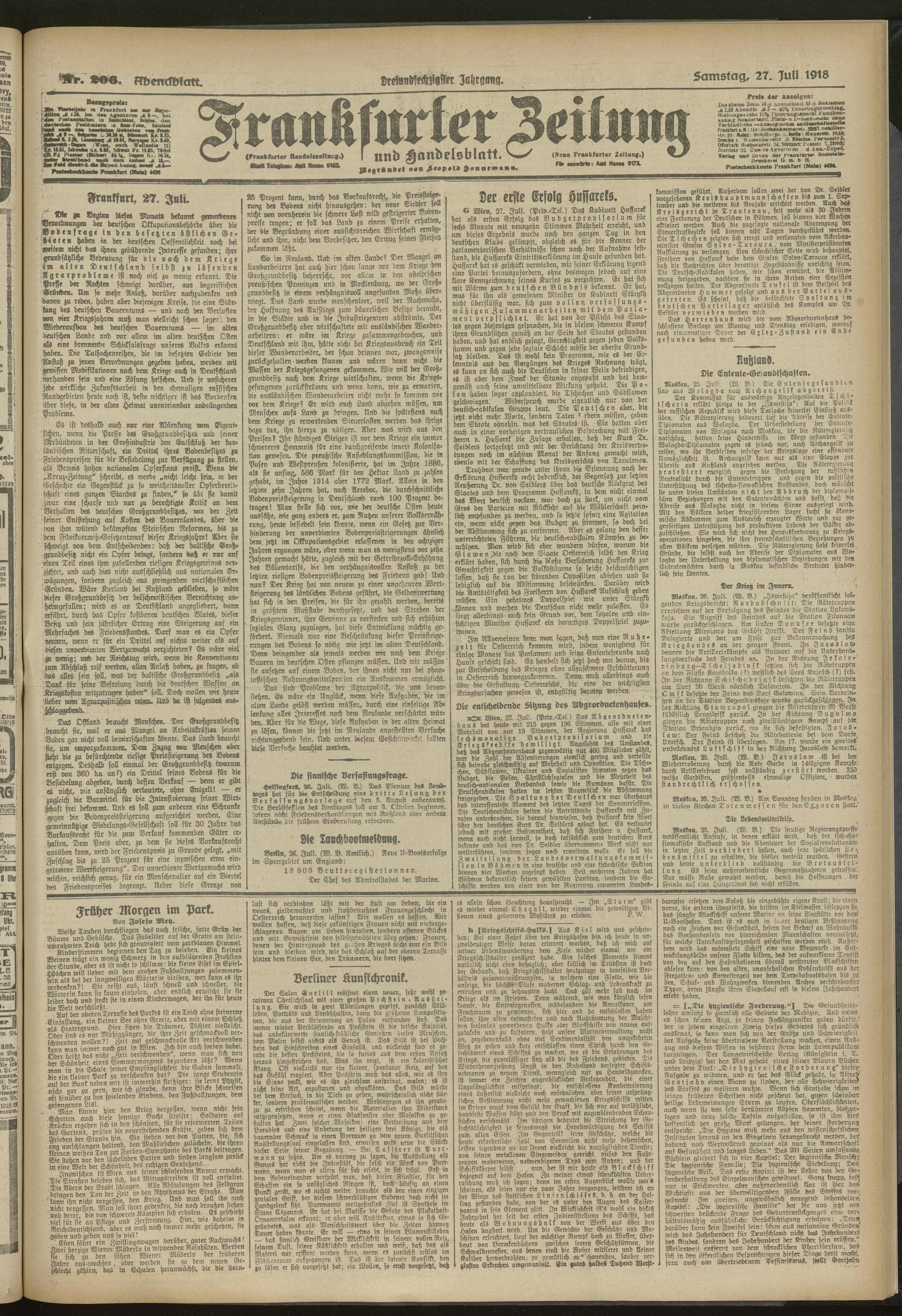 27.07.1918 = Nr. 206. Abendblatt