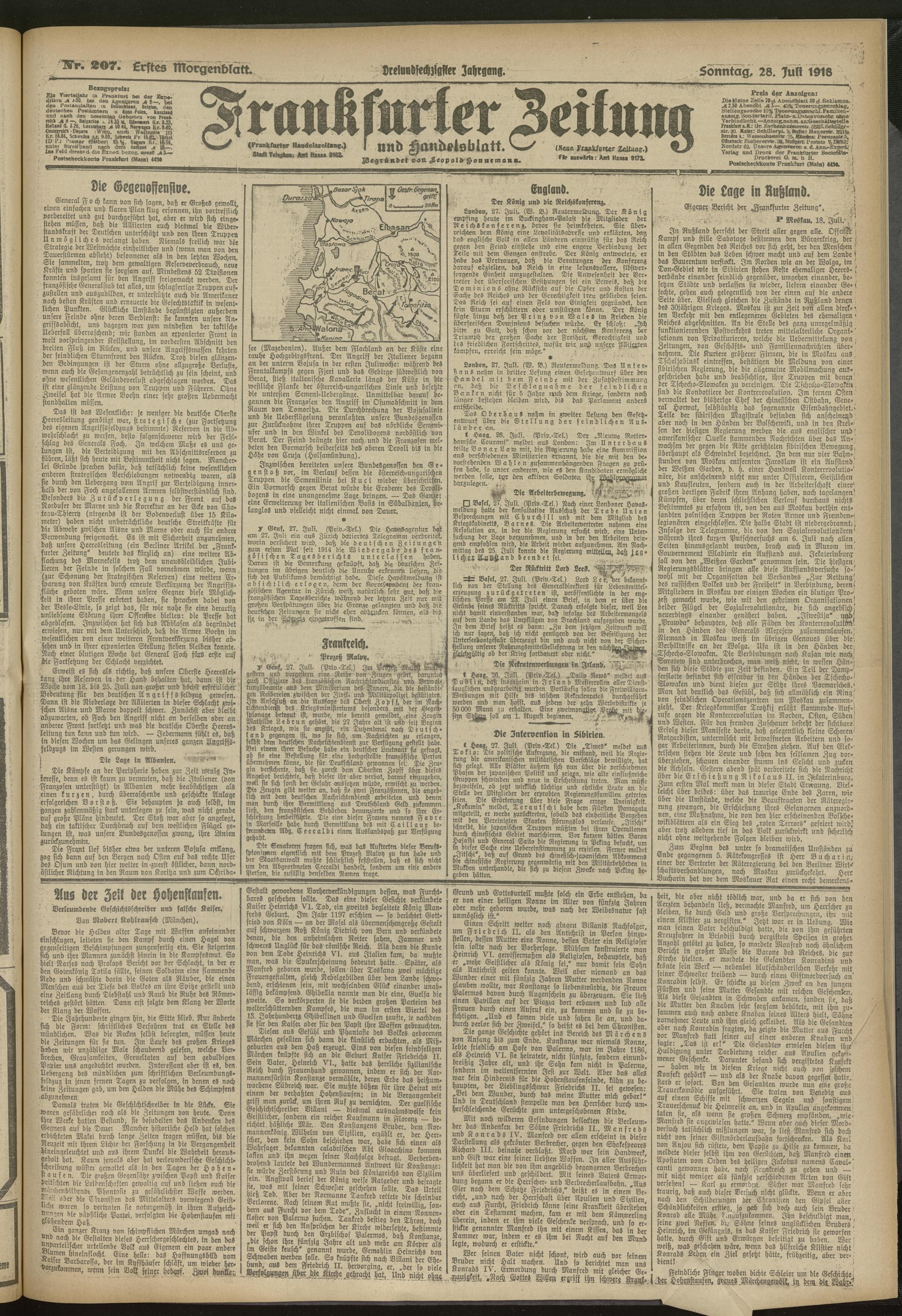 28.07.1918 = Nr. 207. Erstes Morgenblatt