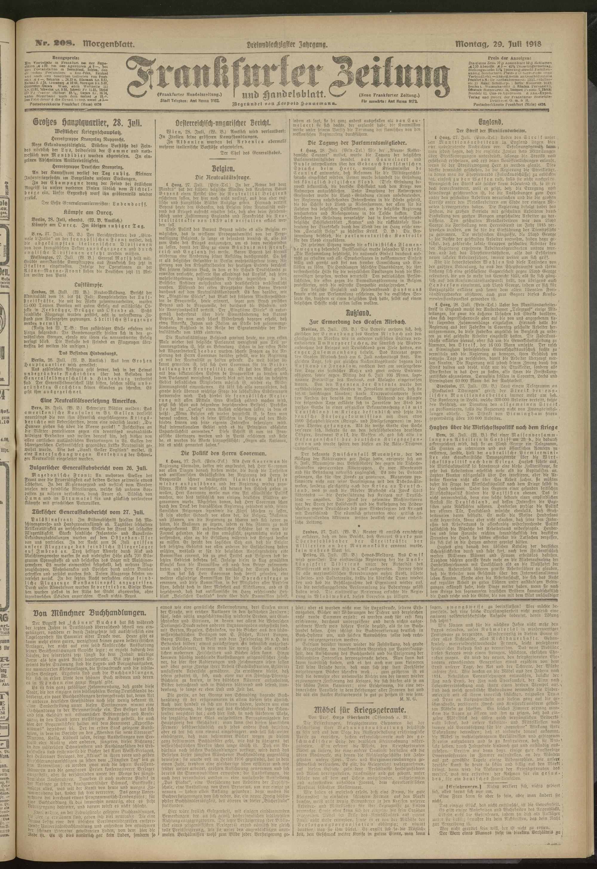 29.07.1918 = Nr. 208. Morgenblatt