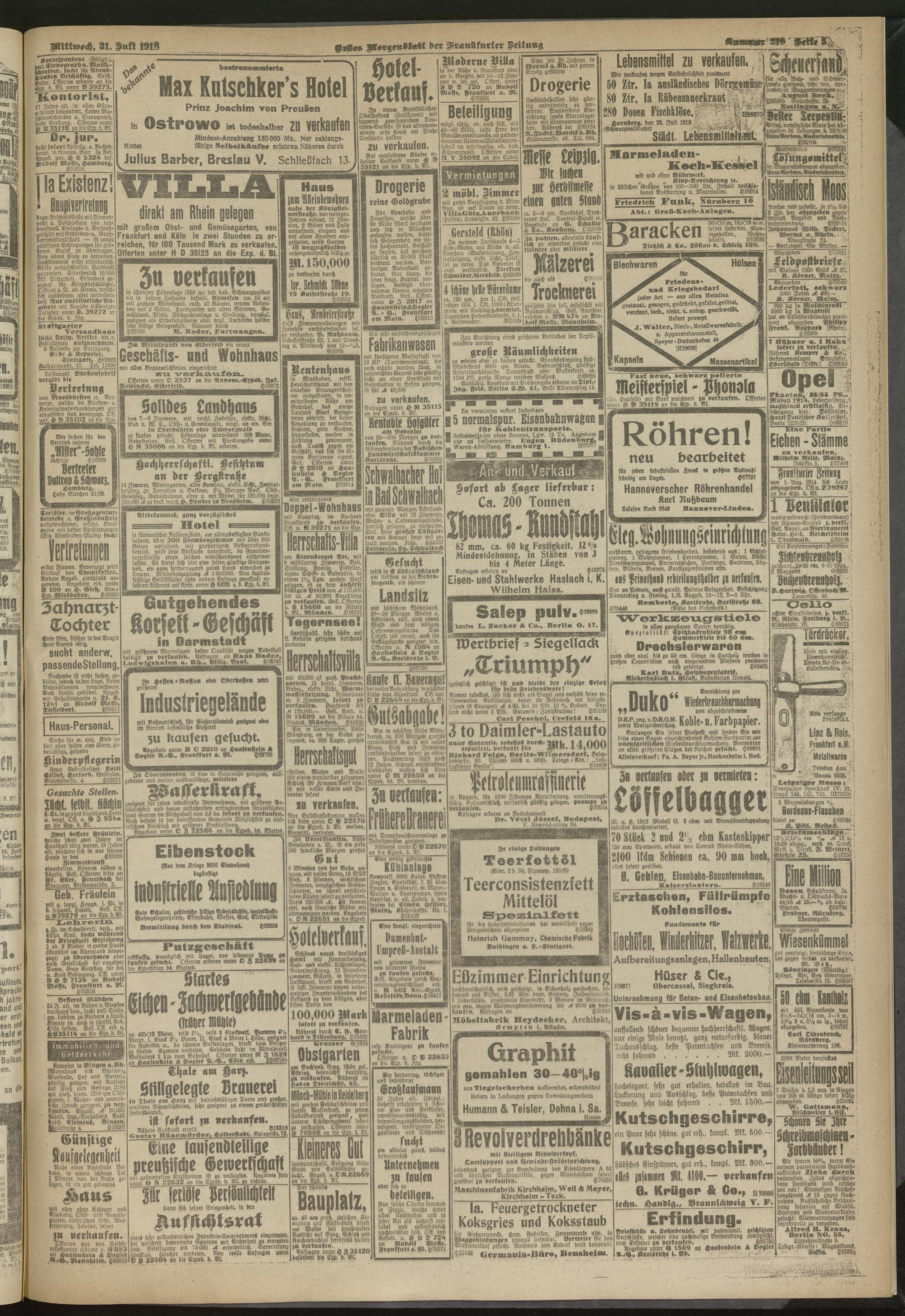 31.07.1918 = Nr. 210. Erstes Morgenblatt