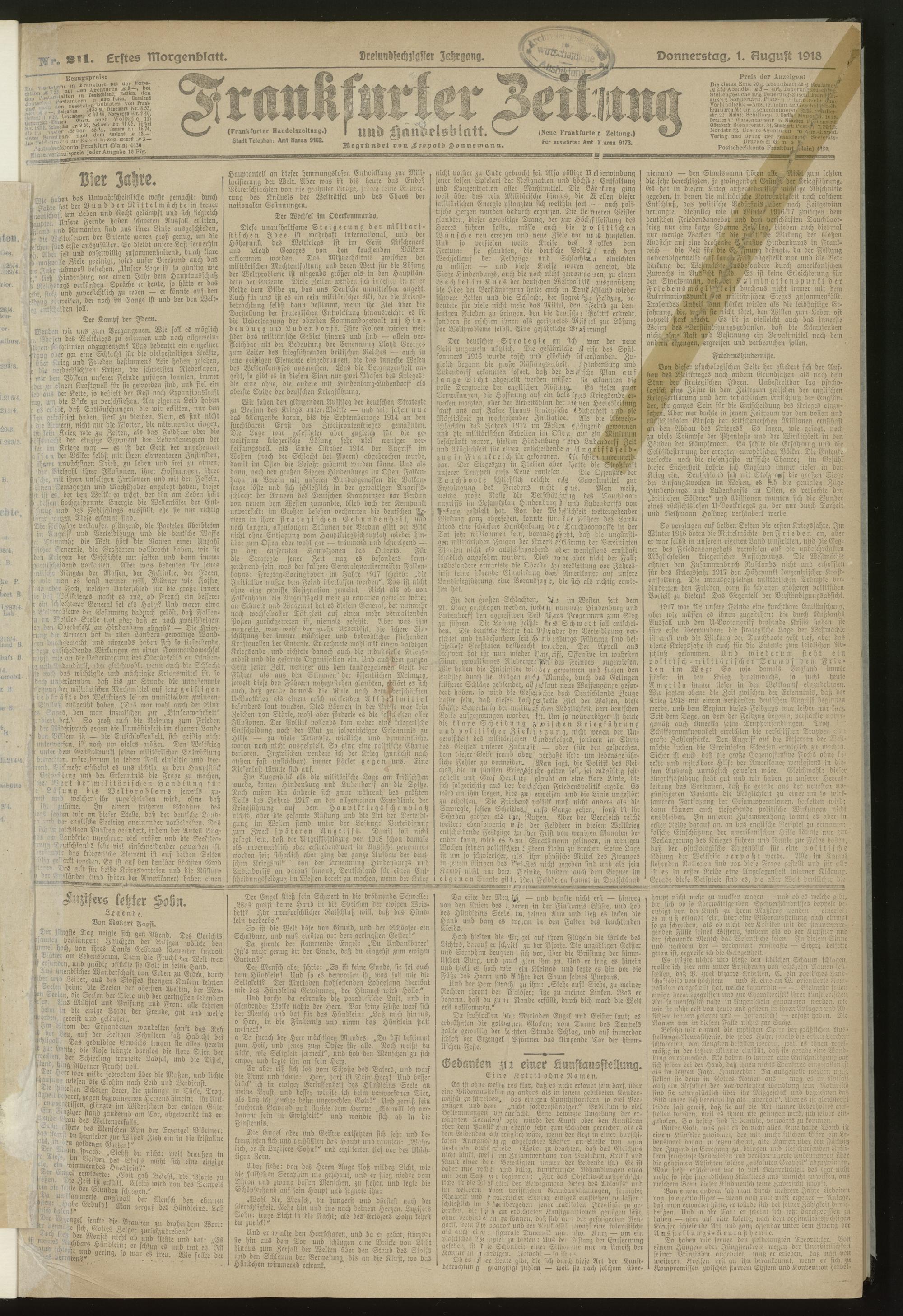 01.08.1918 = Nr. 211. Erstes Morgenblatt