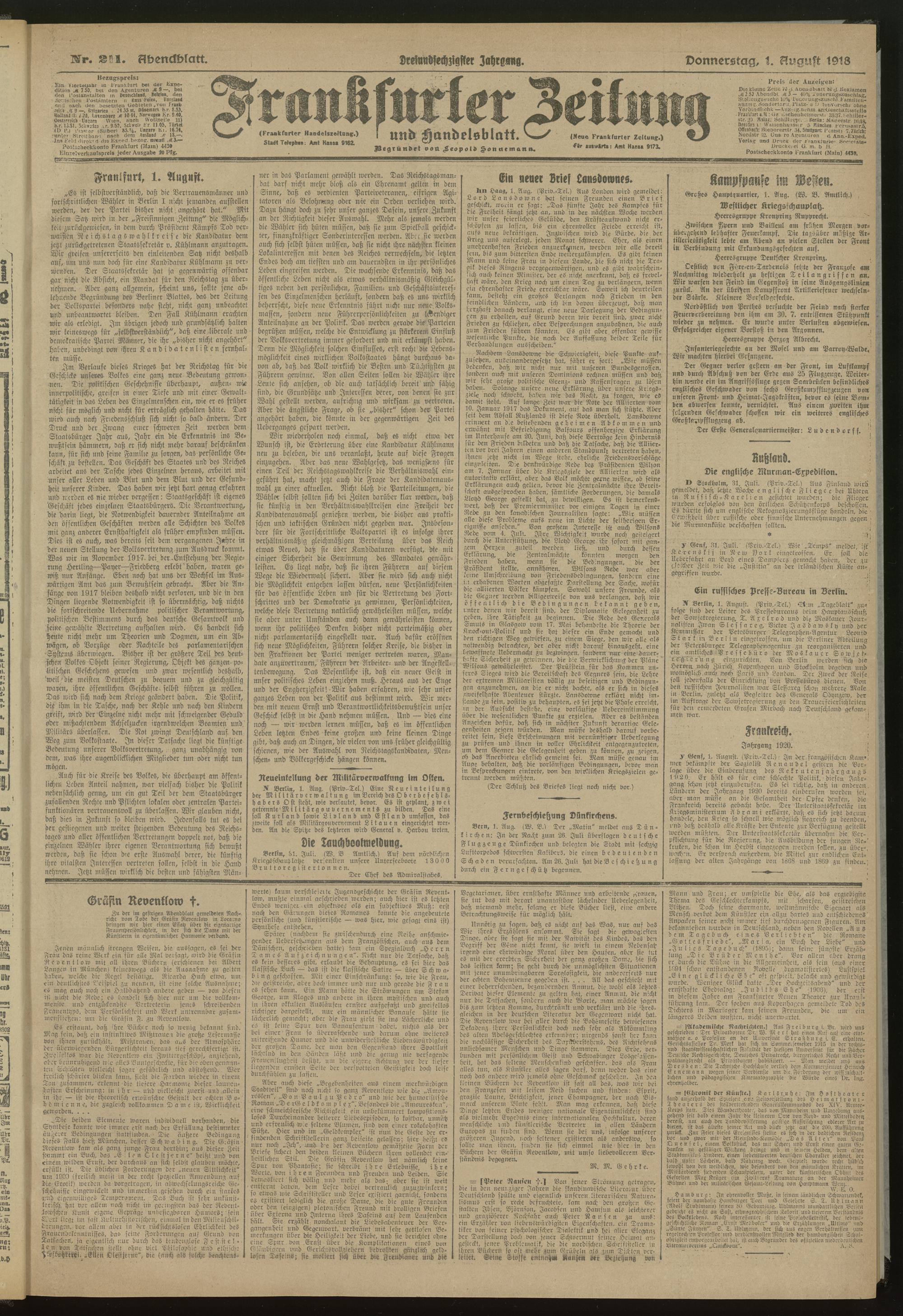 01.08.1918 = Nr. 211. Abendblatt