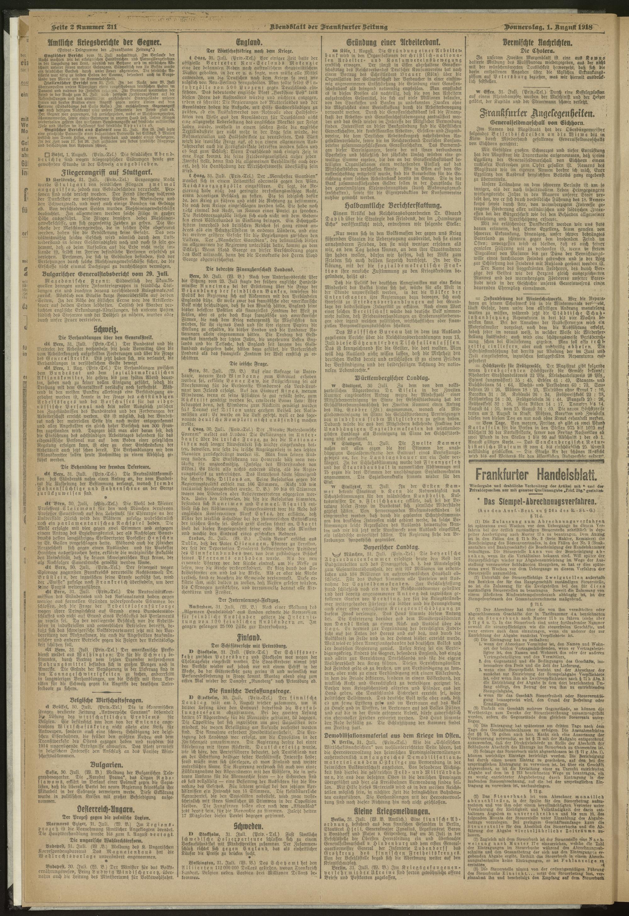 01.08.1918 = Nr. 211. Abendblatt