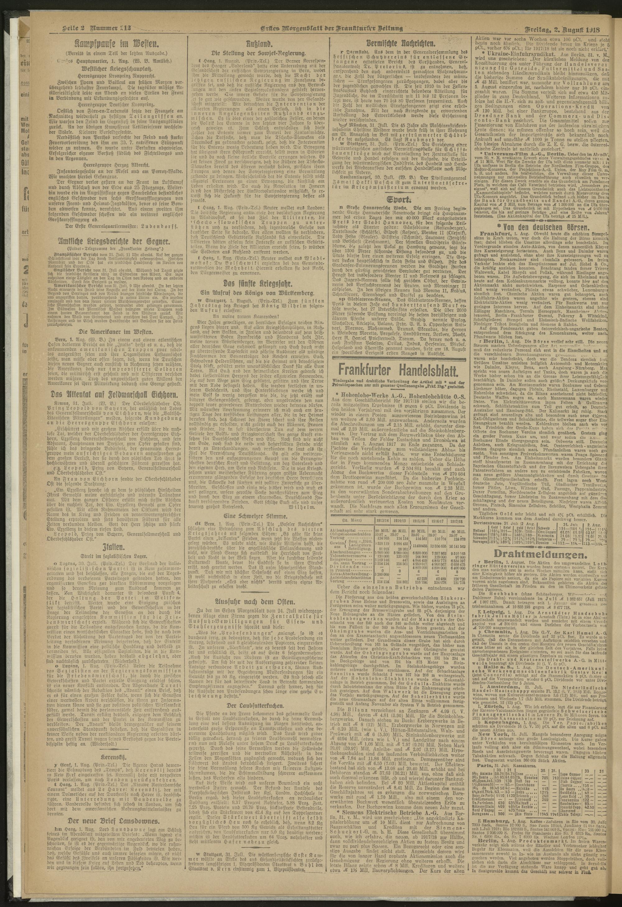 02.08.1918 = Nr. 212. Erstes Morgenblatt