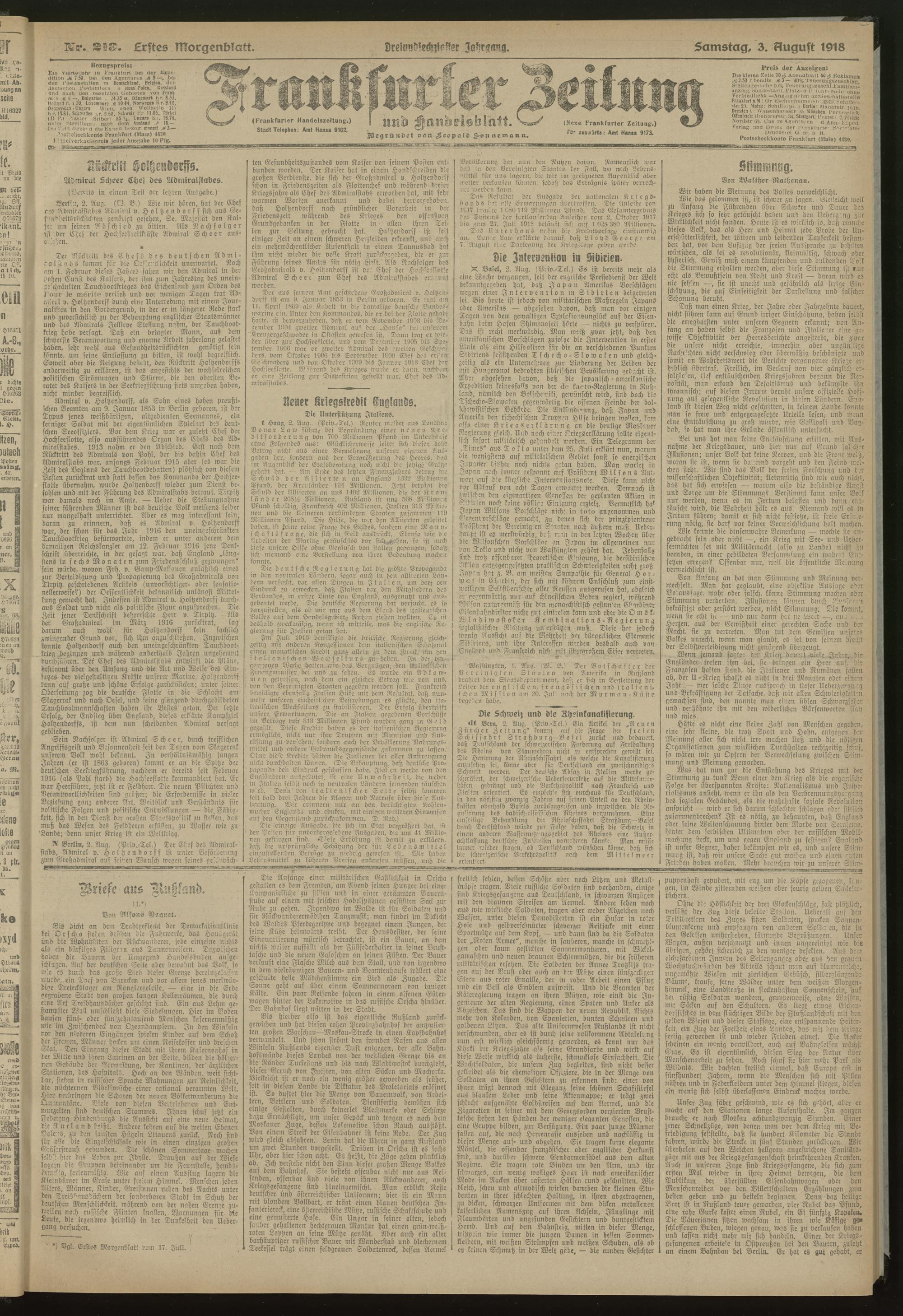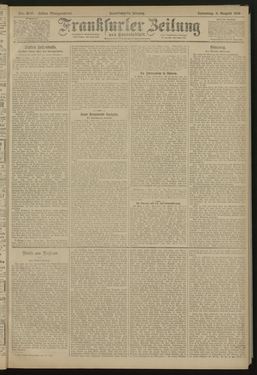03.08.1918 = Nr. 213. Erstes Morgenblatt