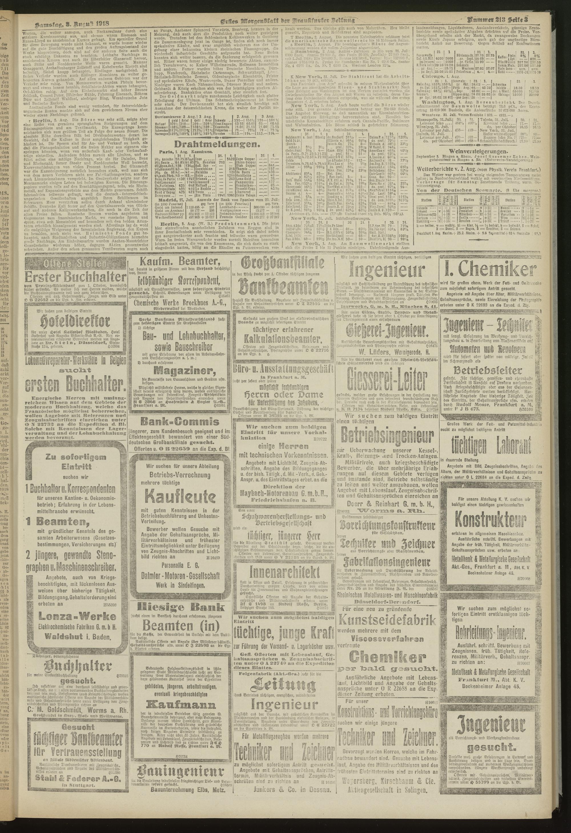 03.08.1918 = Nr. 213. Erstes Morgenblatt