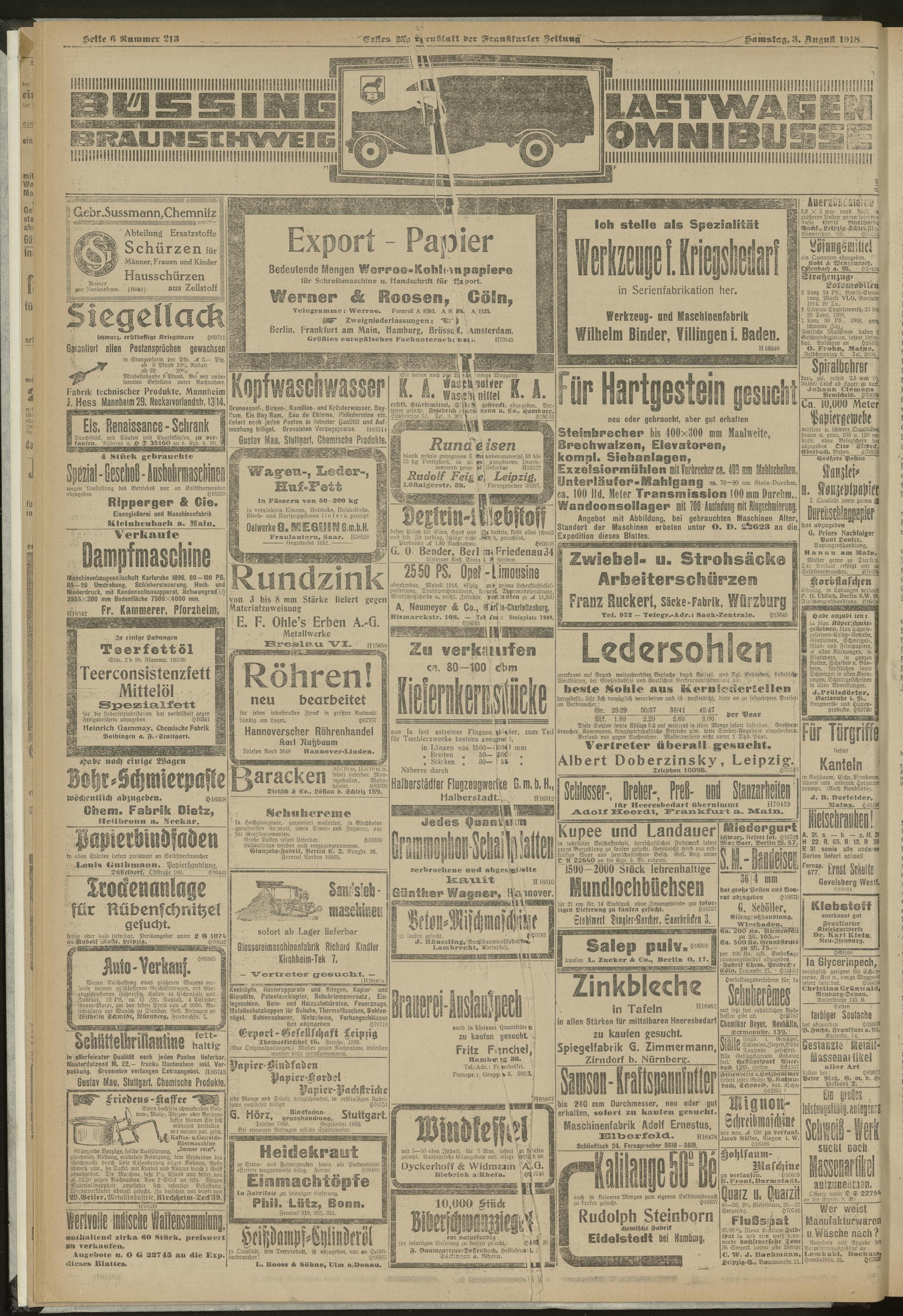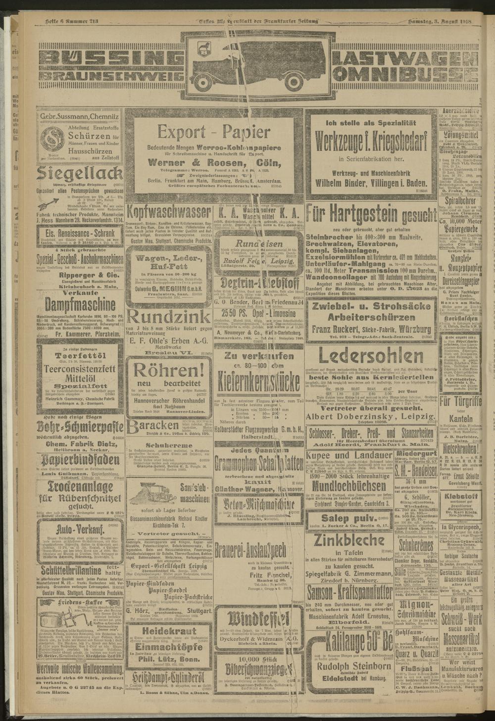 03.08.1918 = Nr. 213. Erstes Morgenblatt