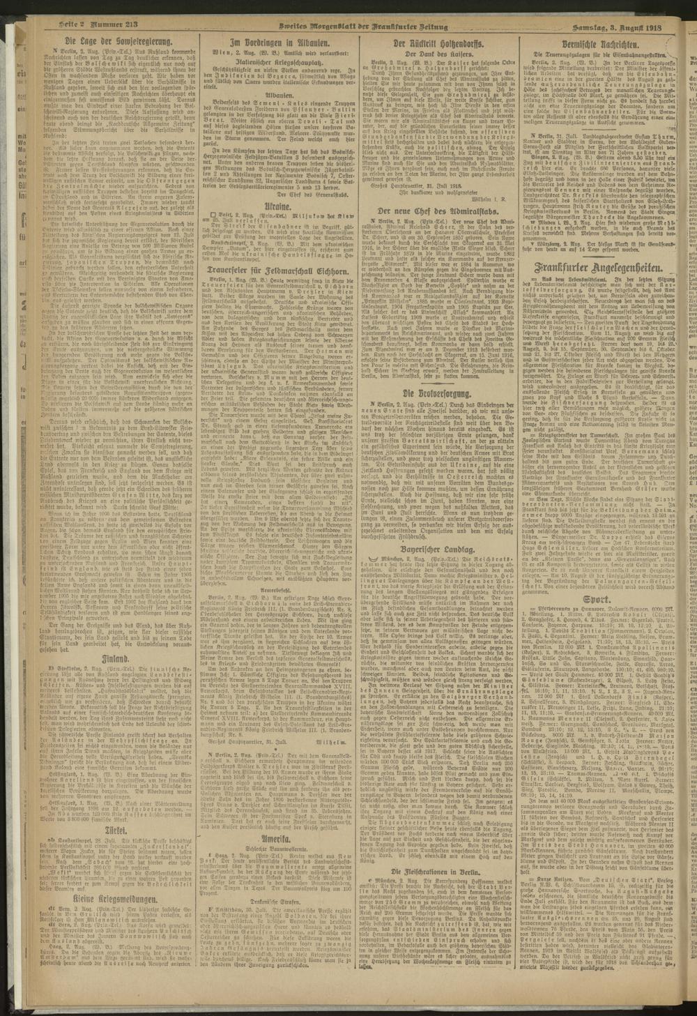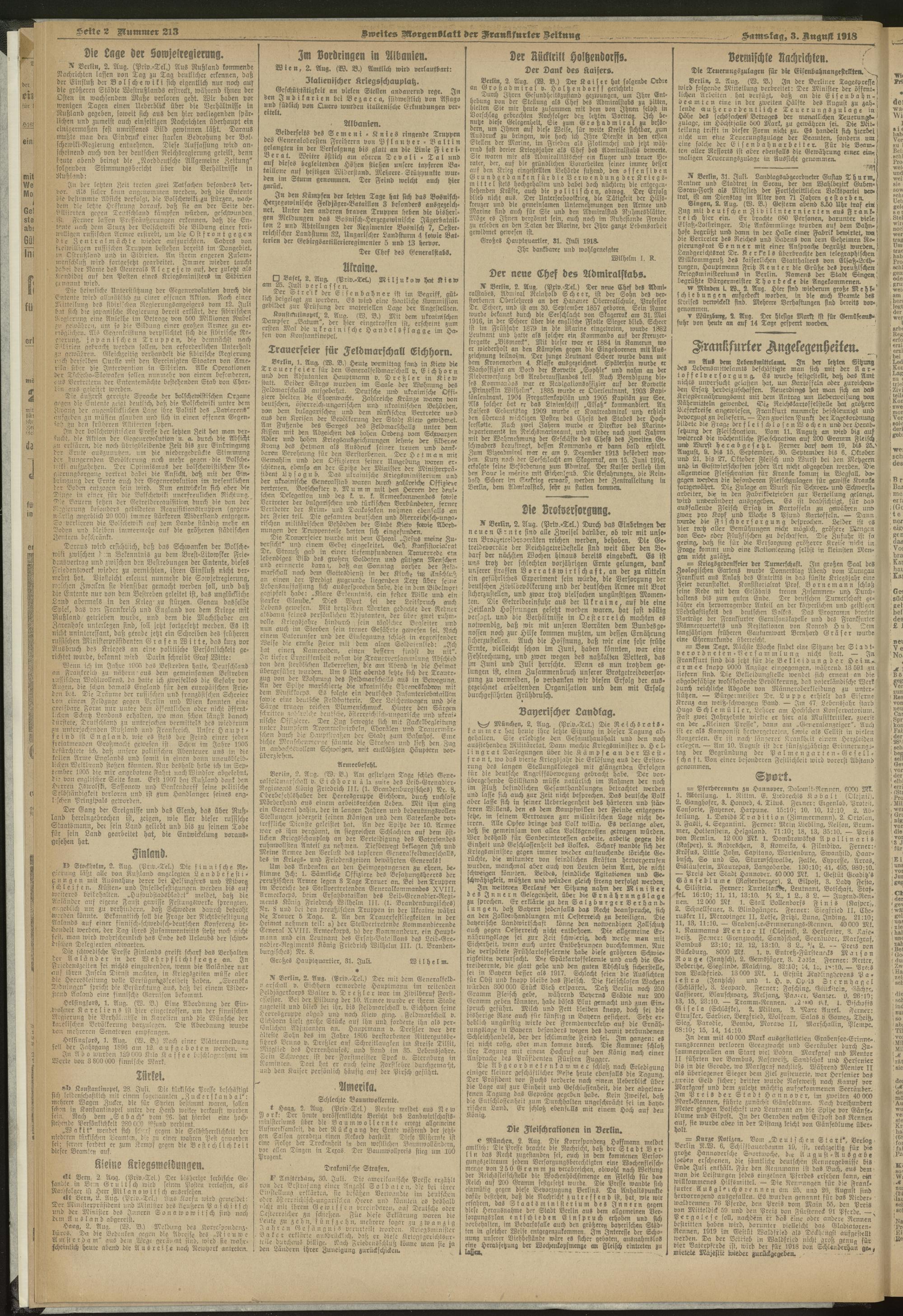 03.08.1918 = Nr. 213. Zweites Morgenblatt