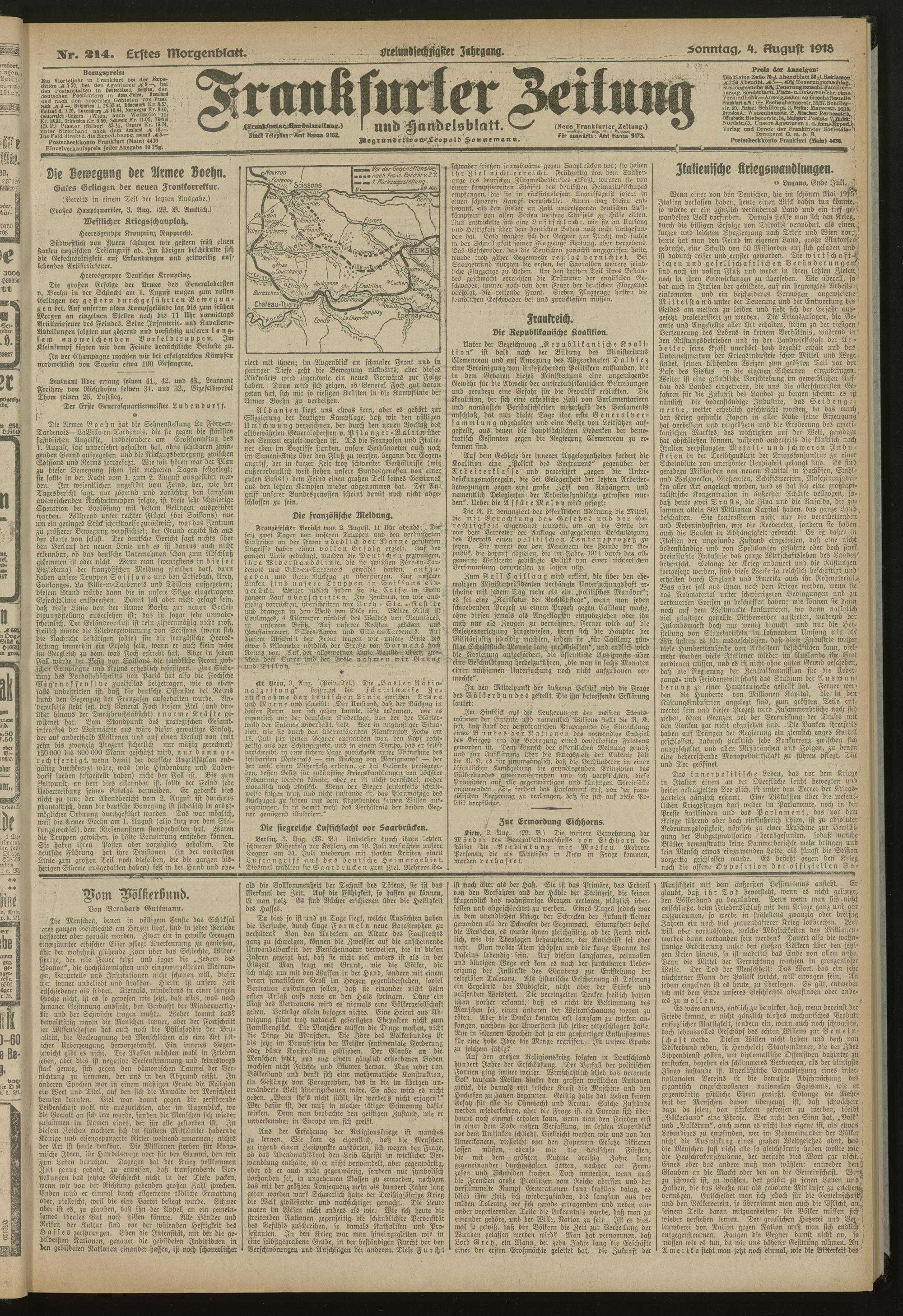 04.08.1918 = Nr. 214. Erstes Morgenblatt