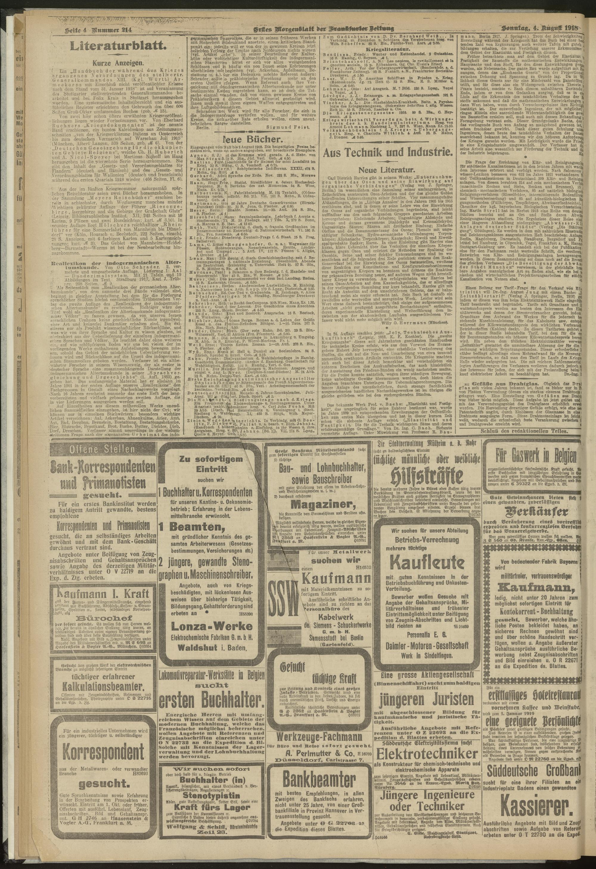 04.08.1918 = Nr. 214. Erstes Morgenblatt