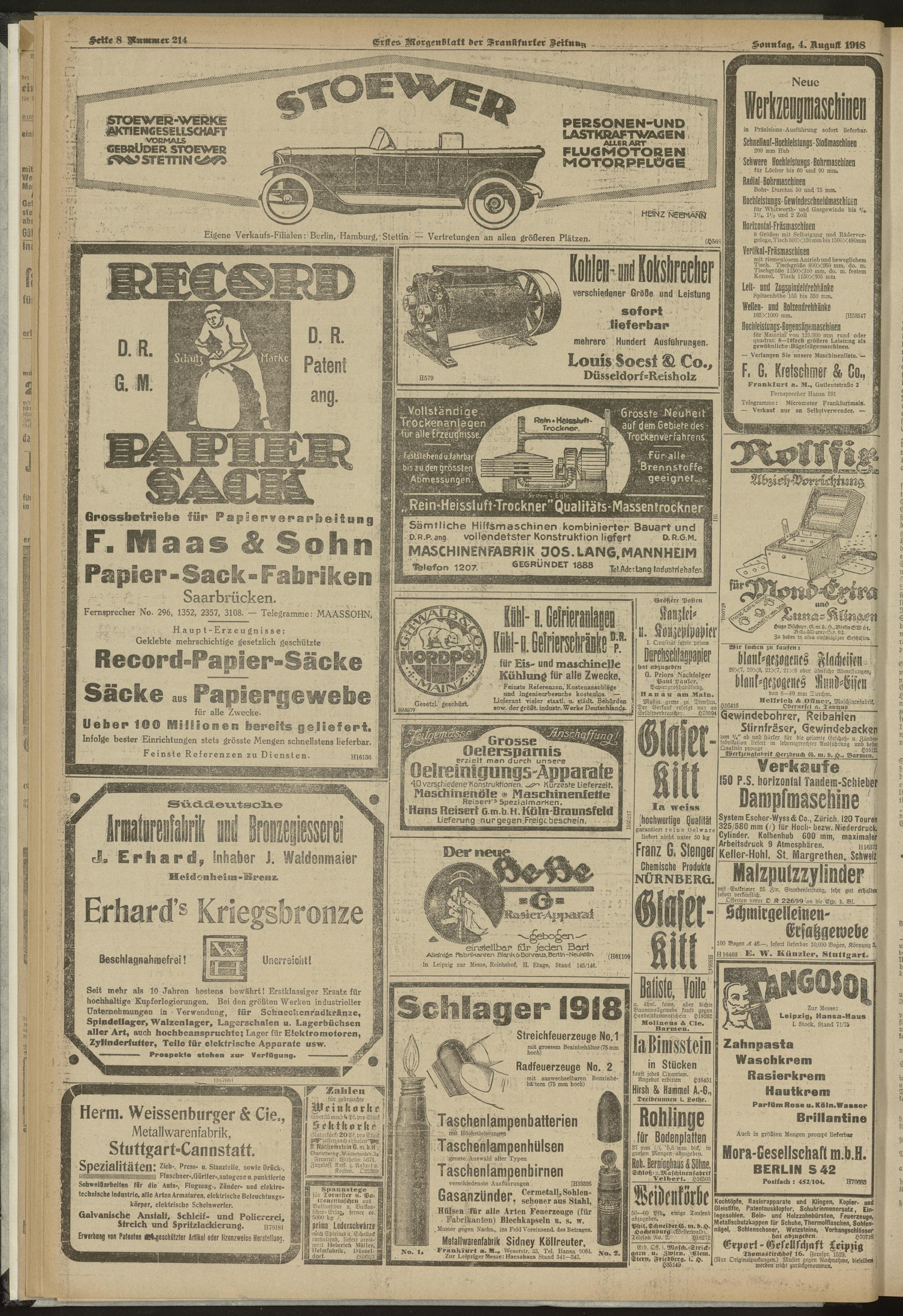 04.08.1918 = Nr. 214. Erstes Morgenblatt