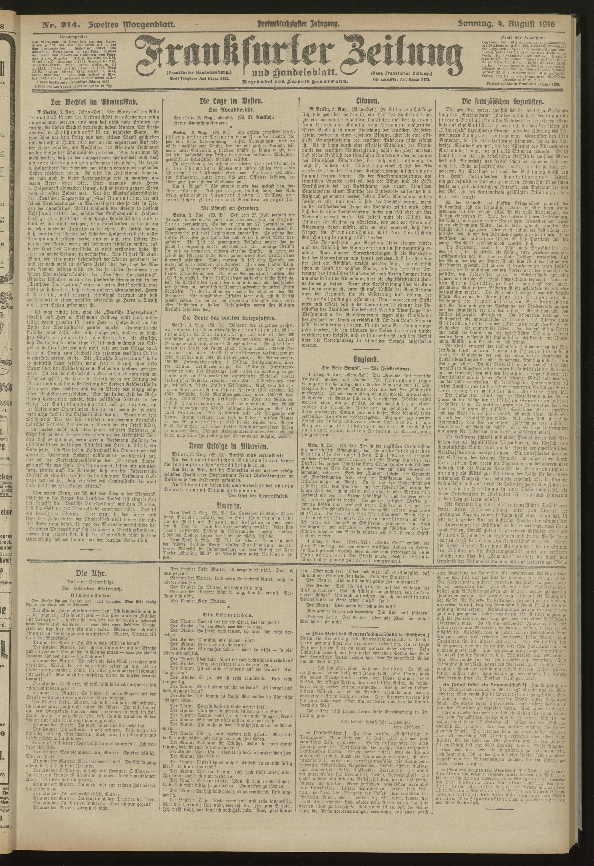 04.08.1918 = Nr. 214. Zweites Morgenblatt