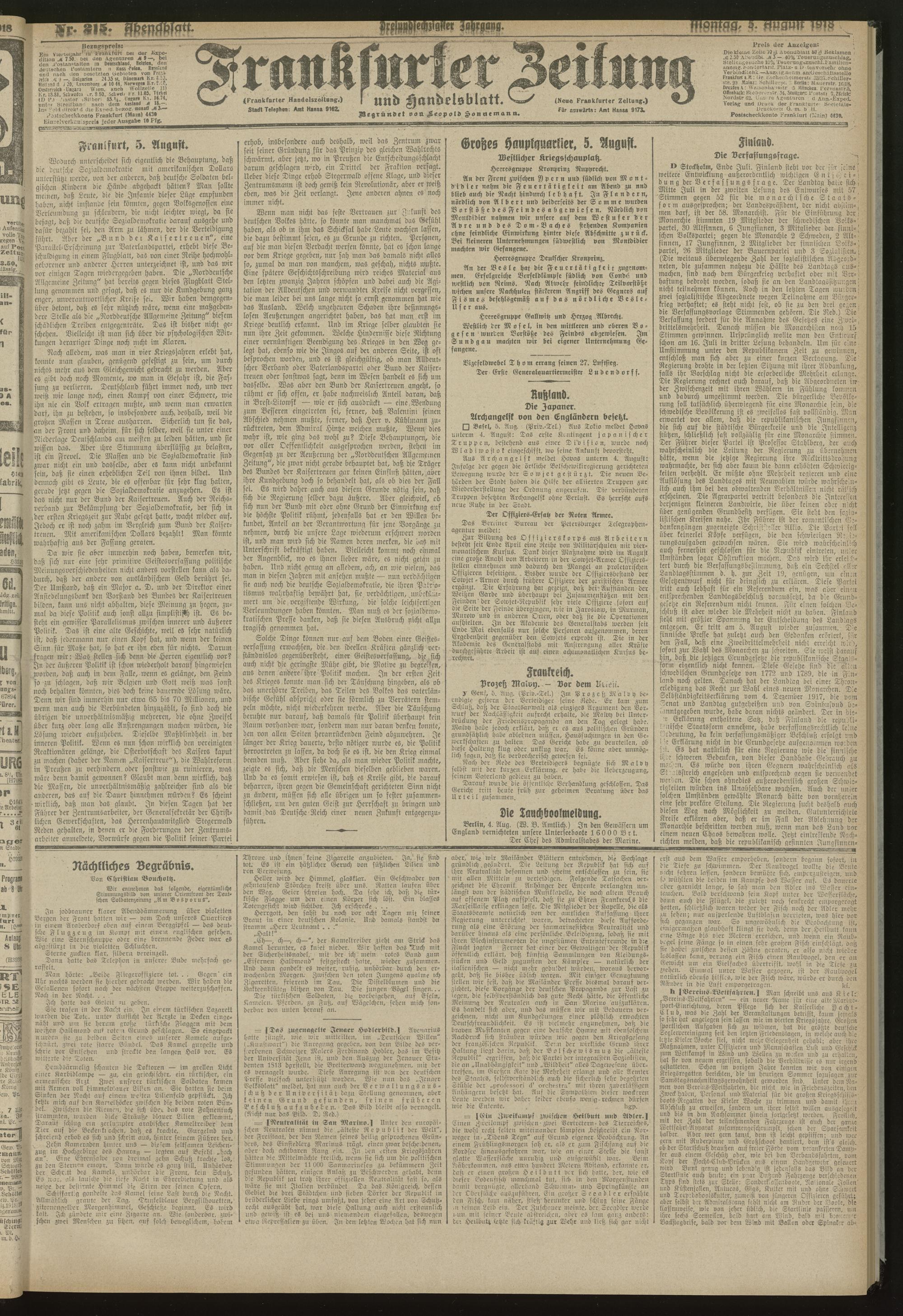 05.08.1918 = Nr. 215. Abendblatt