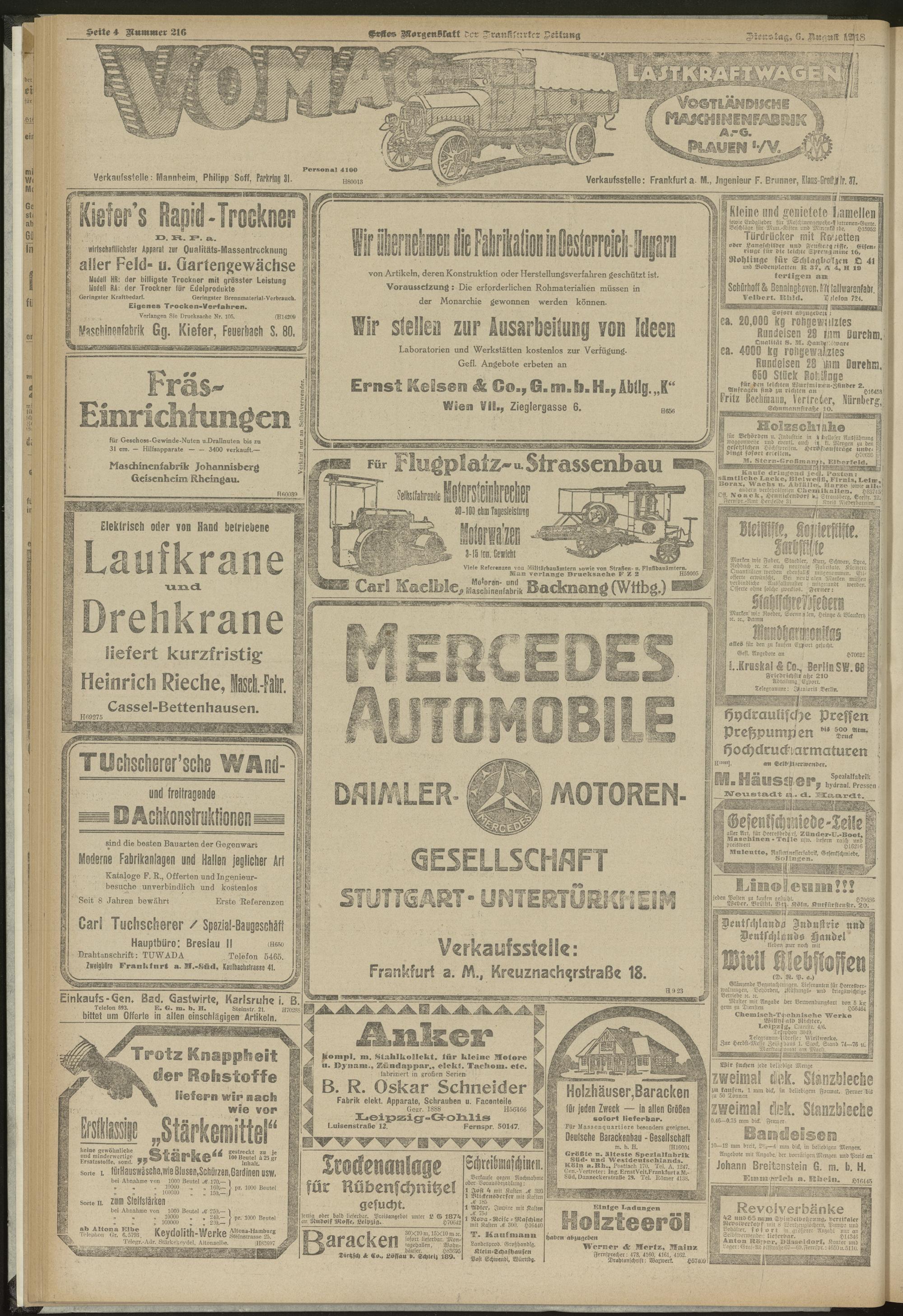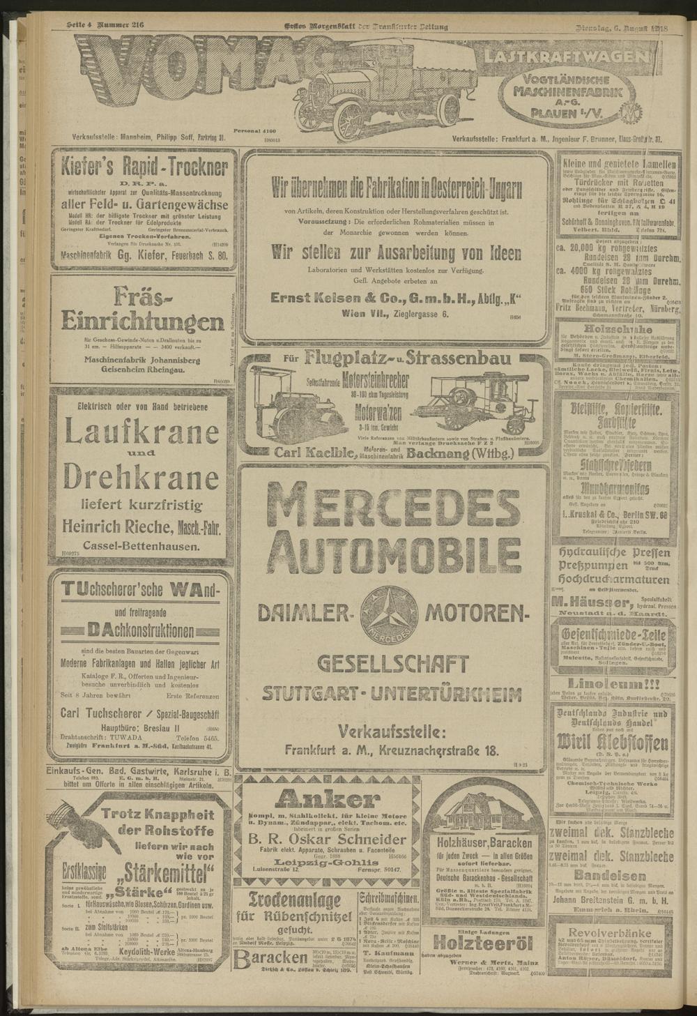 06.08.1918 = Nr. 216. Erstes Morgenblatt