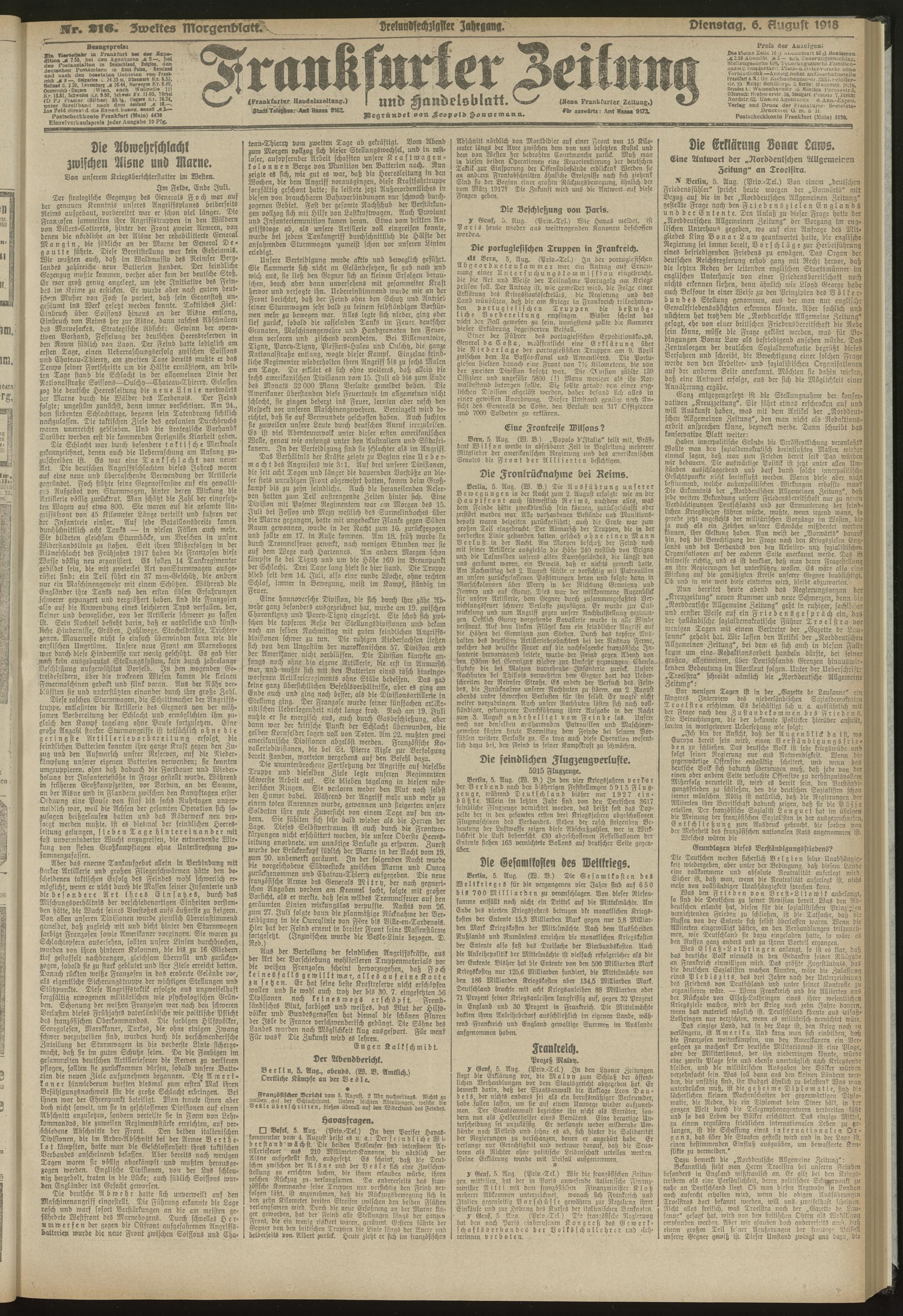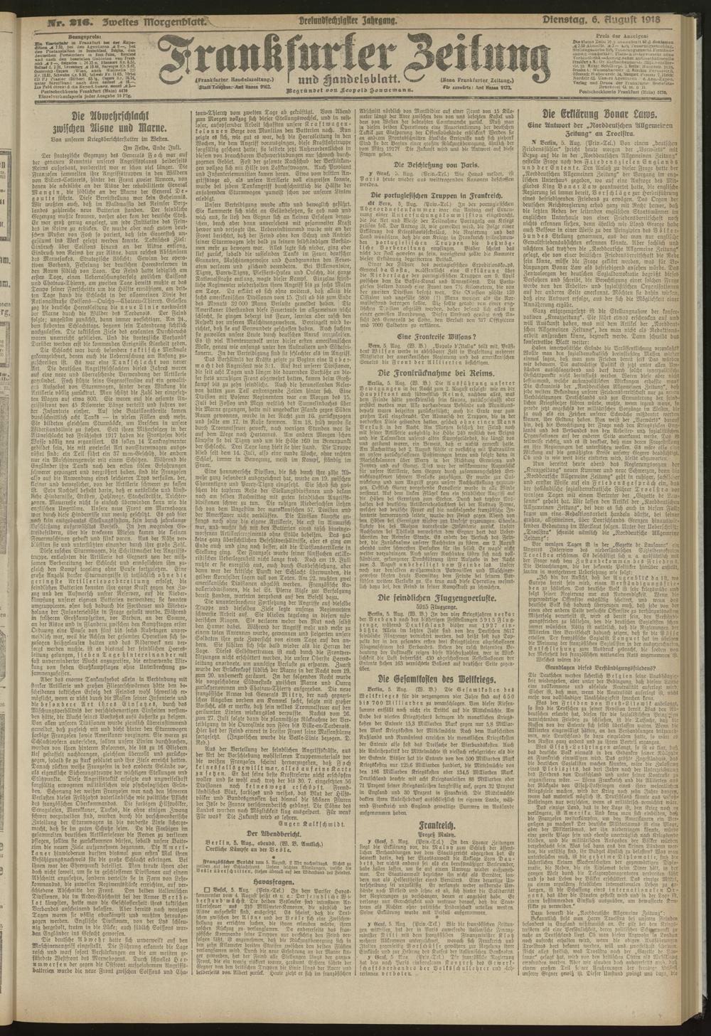 06.08.1918 = Nr. 216. Zweites Morgenblatt