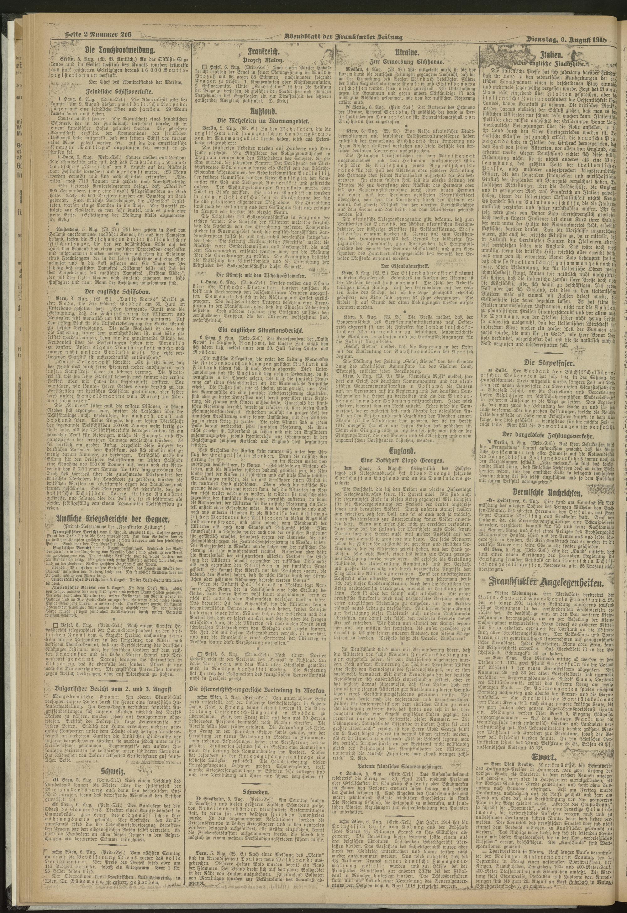 06.08.1918 = Nr. 216. Abendblatt