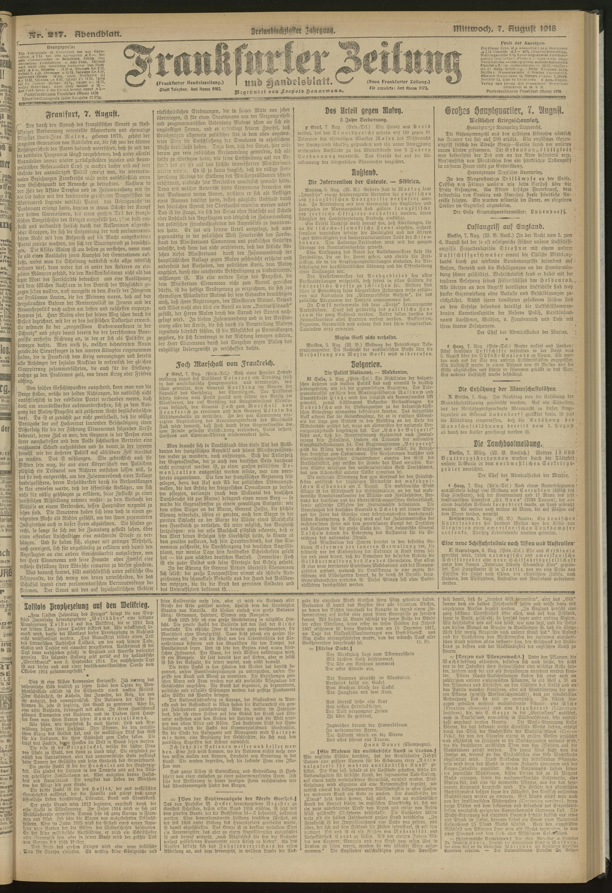 07.08.1918 = Nr. 217. Abendblatt