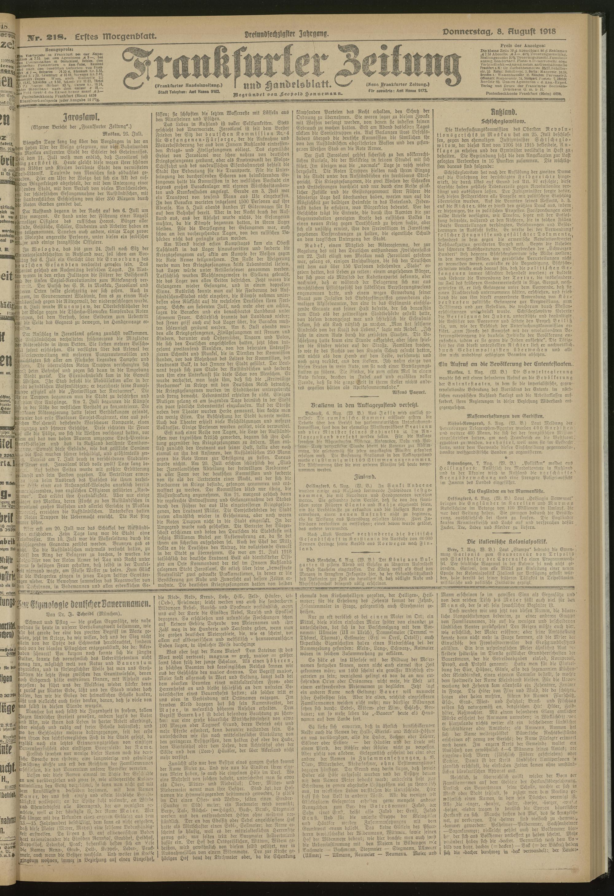 08.08.1918 = Nr. 218. Erstes Morgenblatt