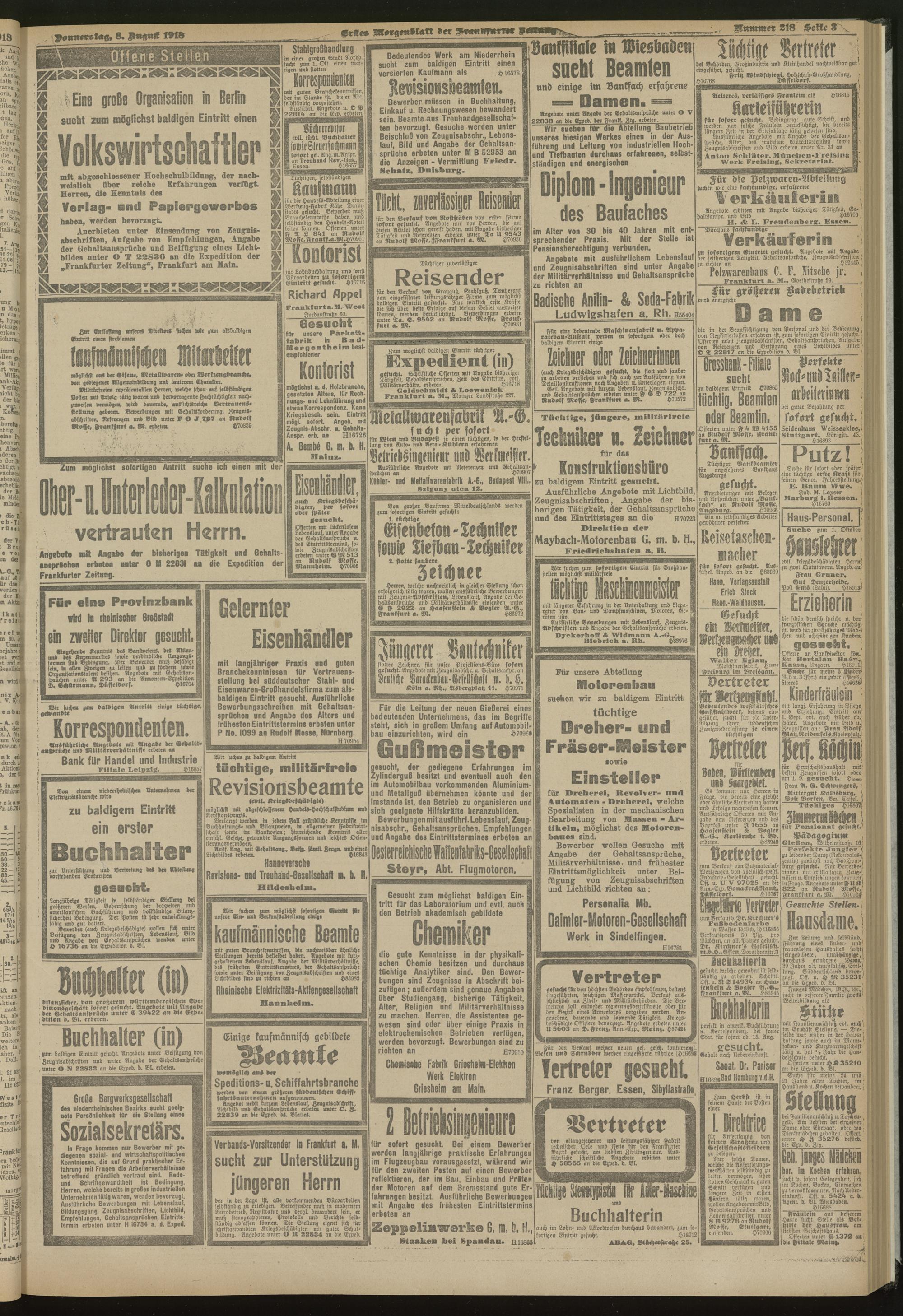 08.08.1918 = Nr. 218. Erstes Morgenblatt