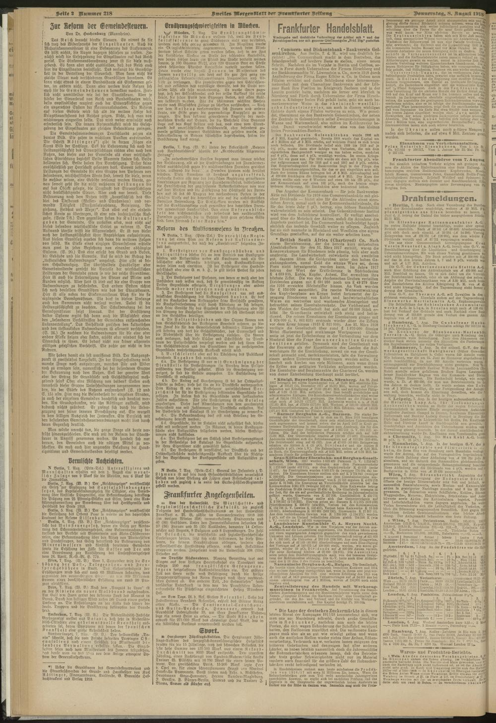 08.08.1918 = Nr. 218. Zweites Morgenblatt
