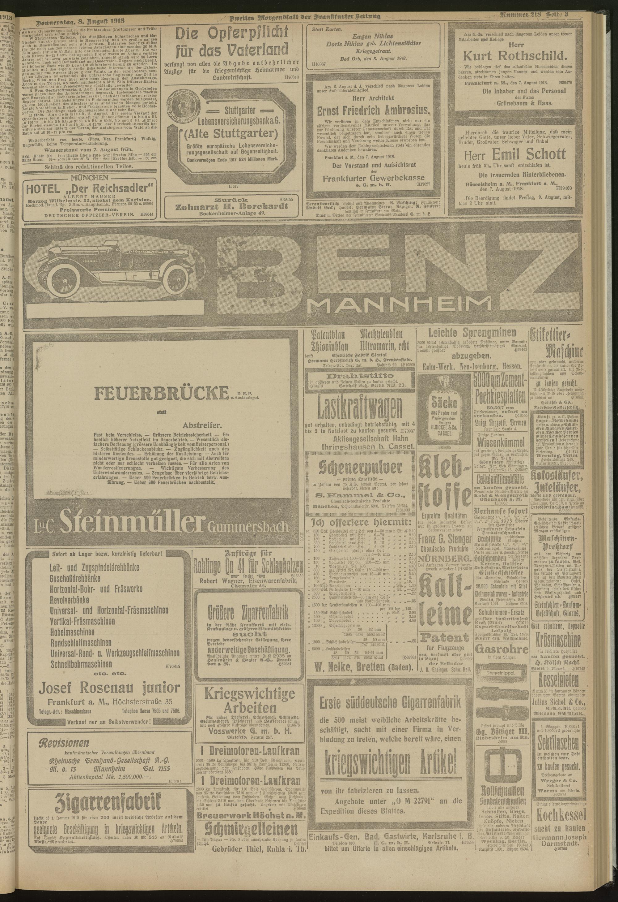 08.08.1918 = Nr. 218. Zweites Morgenblatt