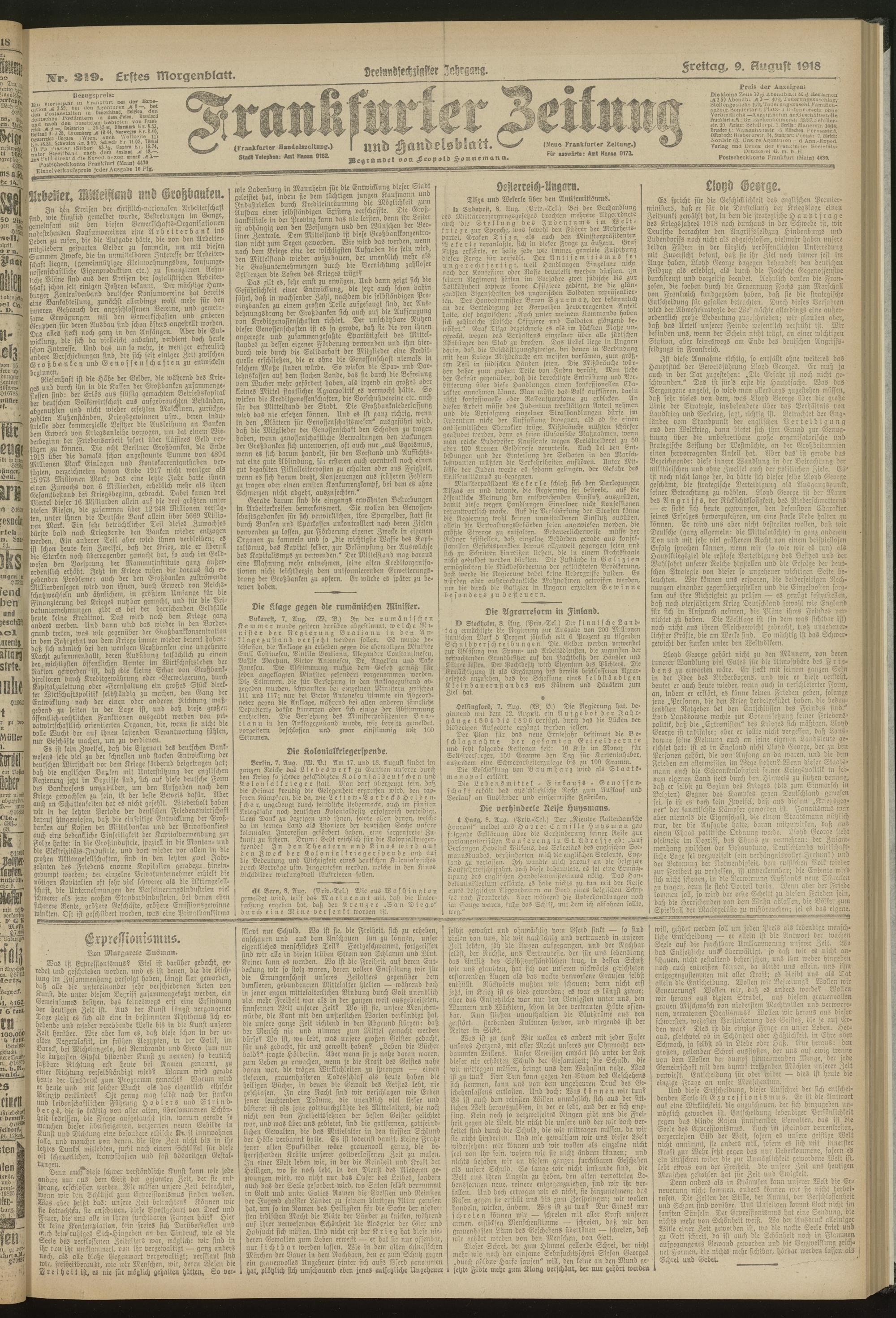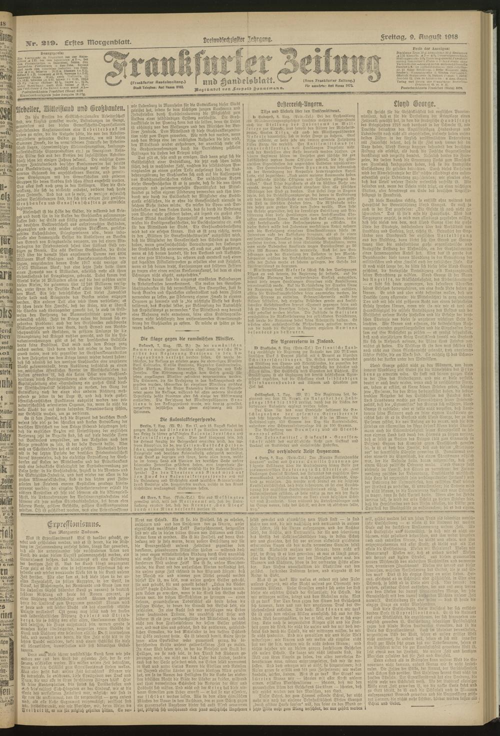 09.08.1918 = Nr. 219. Erstes Morgenblatt