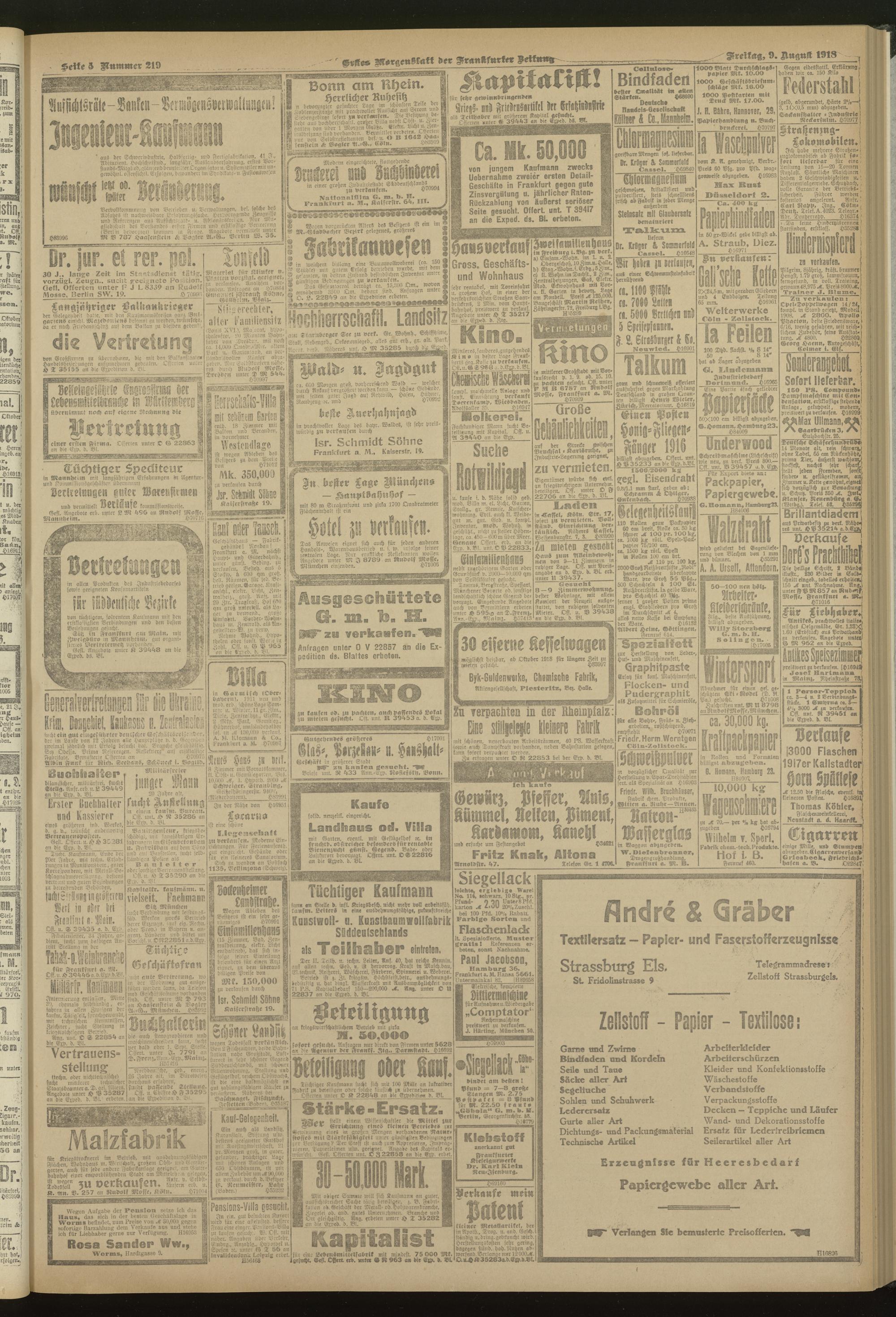 09.08.1918 = Nr. 219. Erstes Morgenblatt