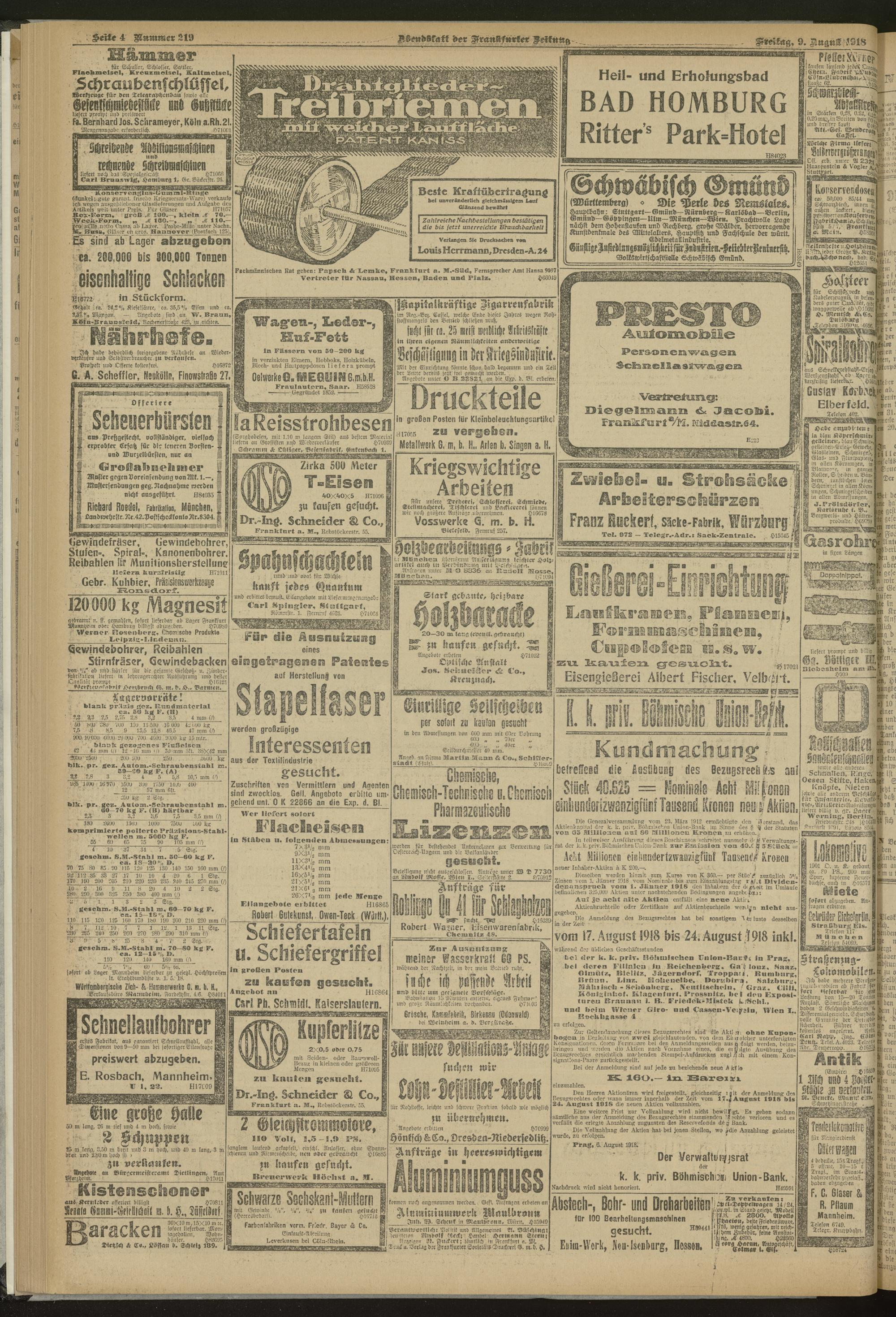 09.08.1918 = Nr. 219. Abendblatt