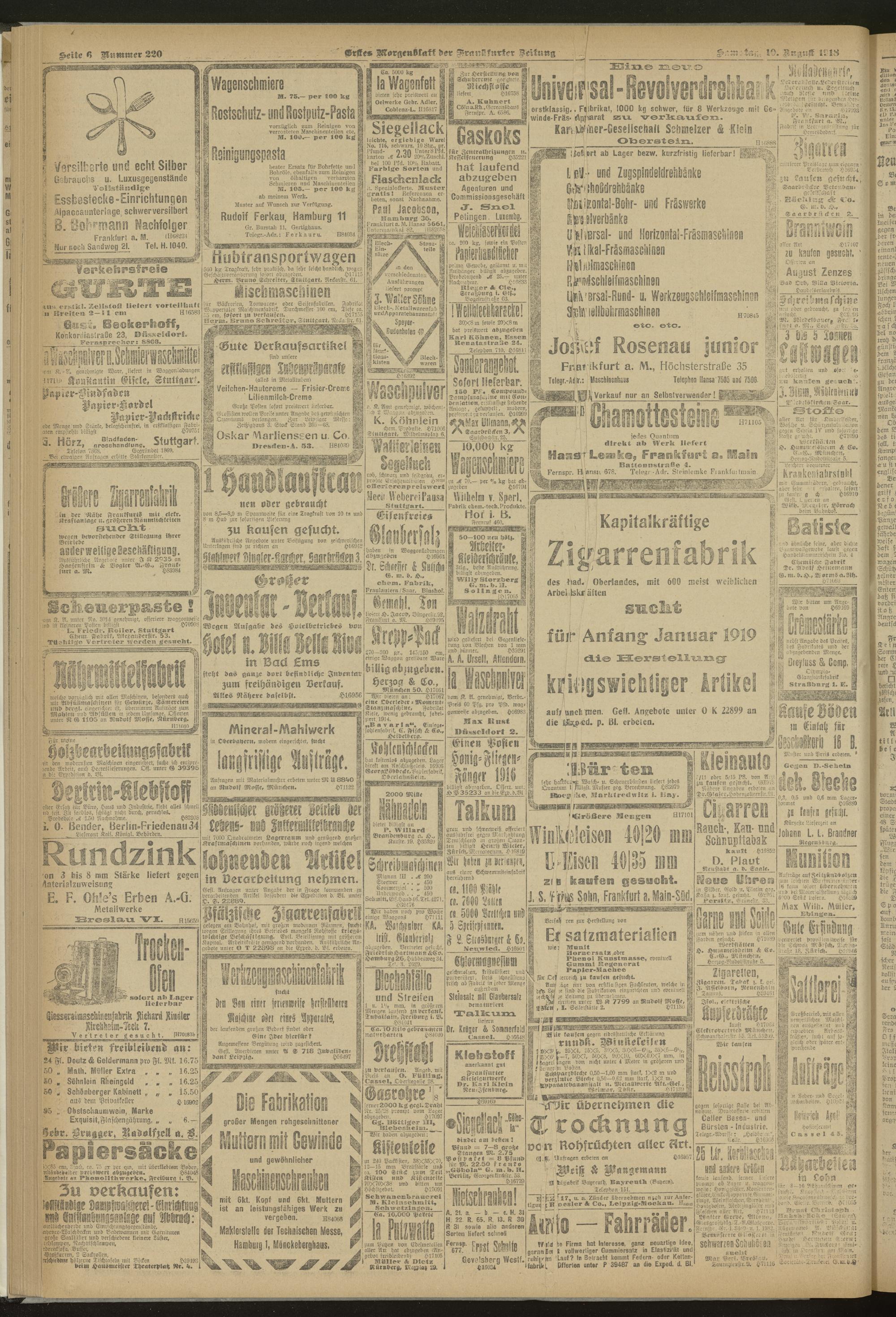 10.08.1918 = Nr. 220. Erstes Morgenblatt