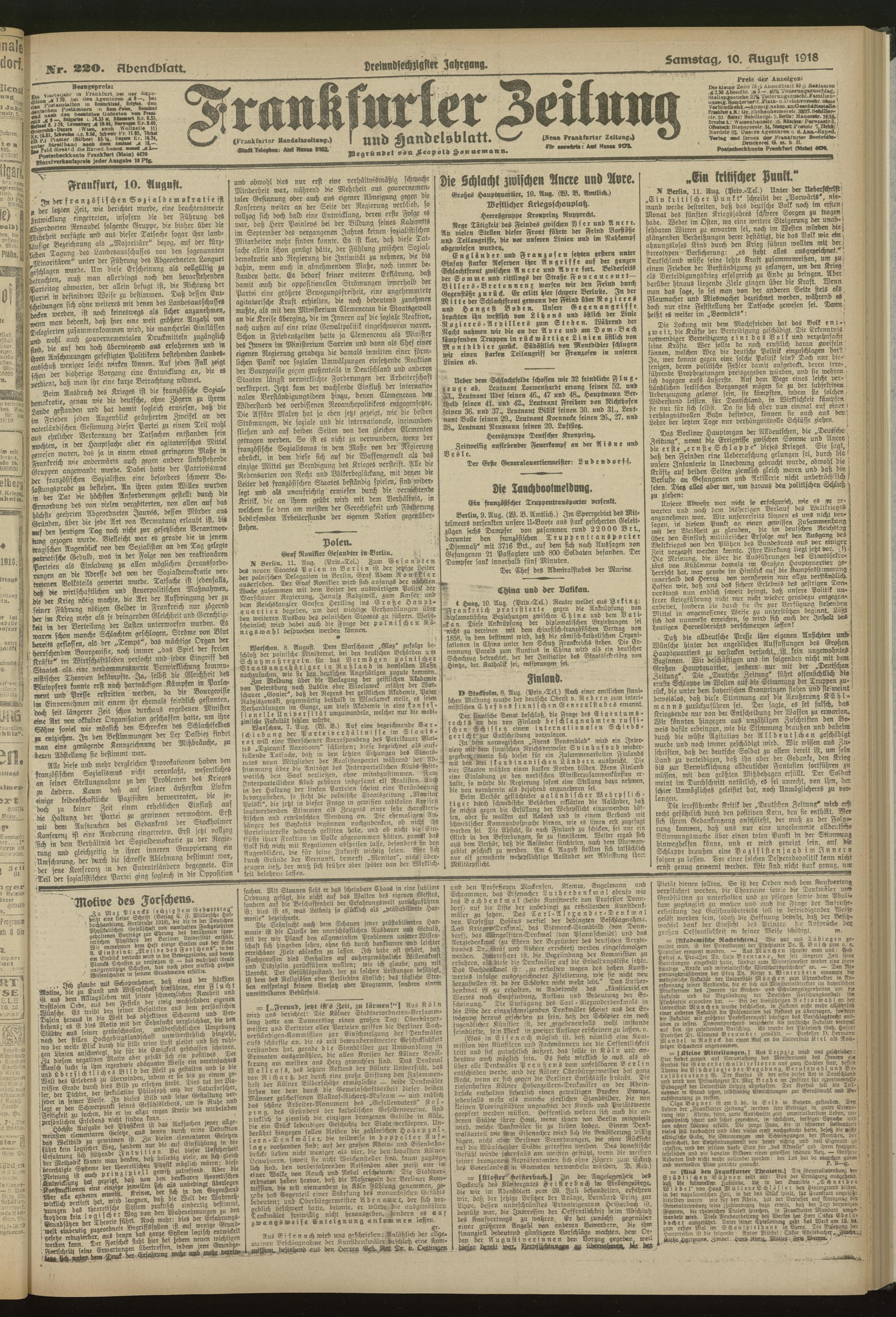 10.08.1918 = Nr. 220. Abendblatt