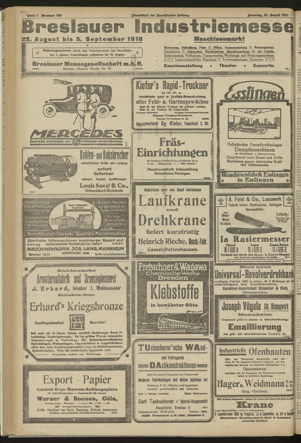 10.08.1918 = Nr. 220. Abendblatt