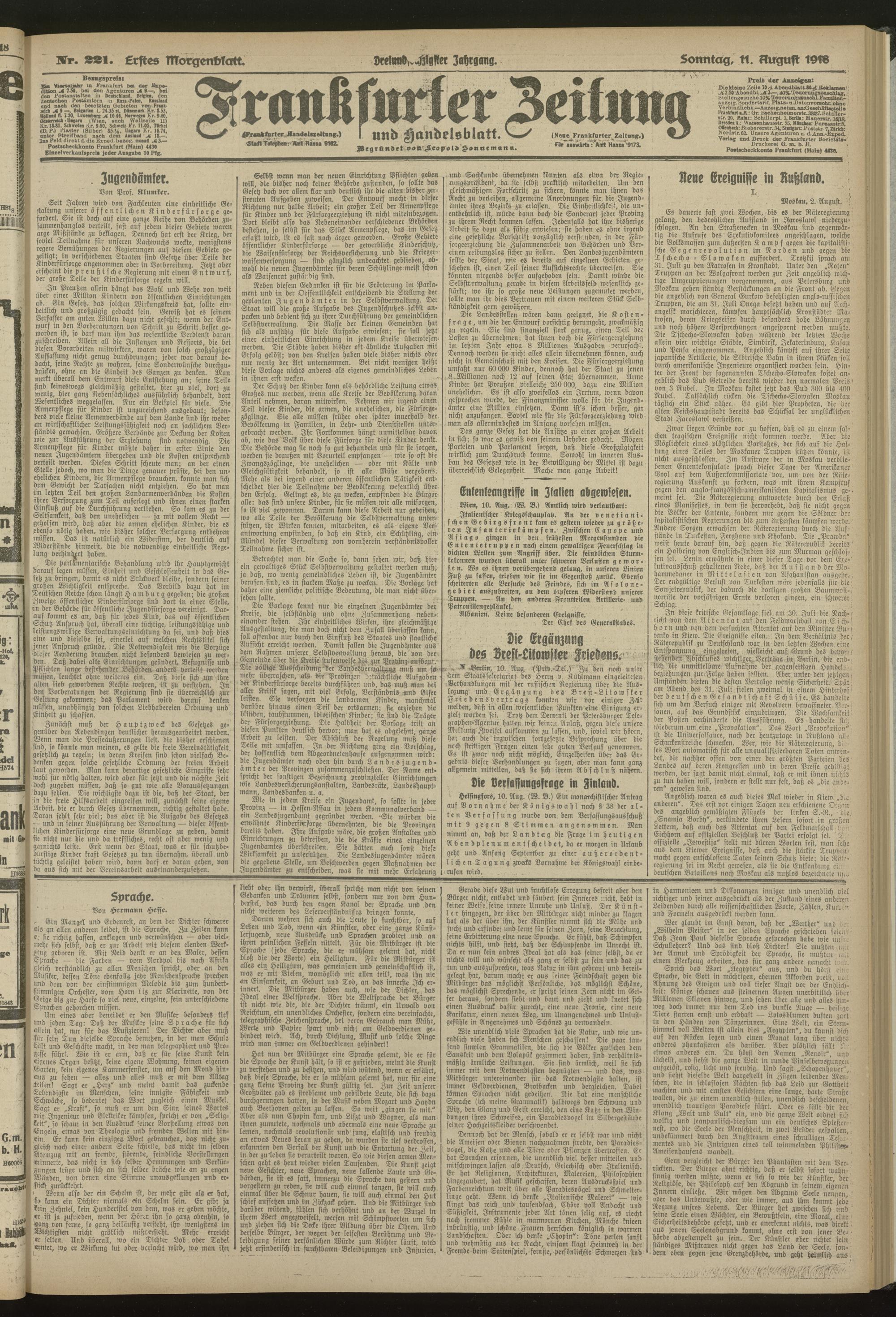 11.08.1918 = Nr. 221. Erstes Morgenblatt