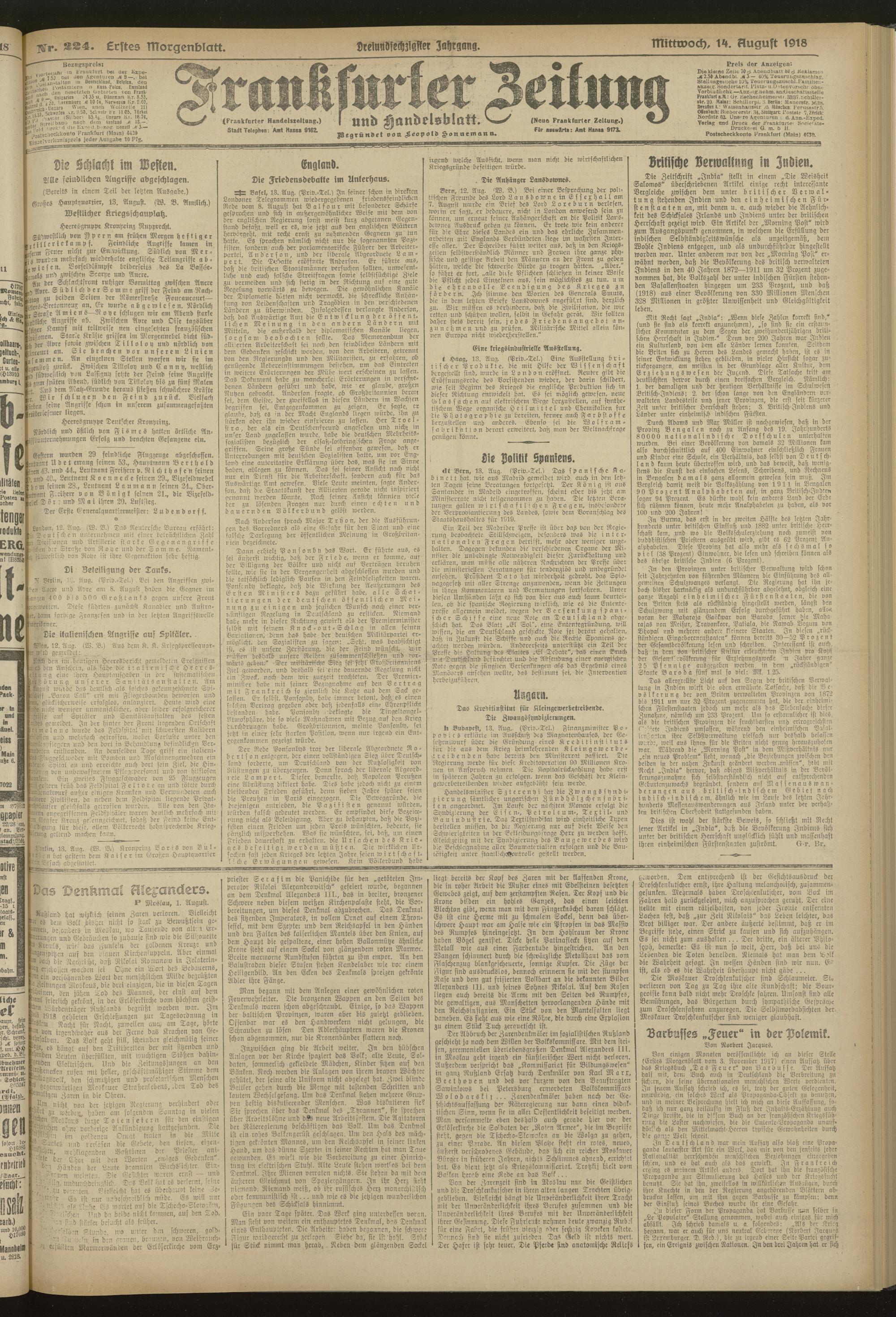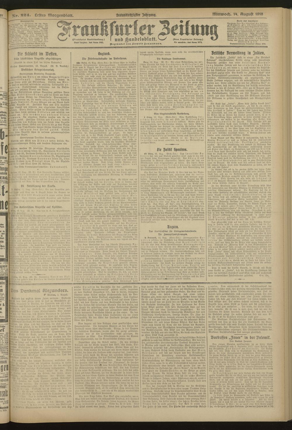 14.08.1918 = Nr. 224. Erstes Morgenblatt