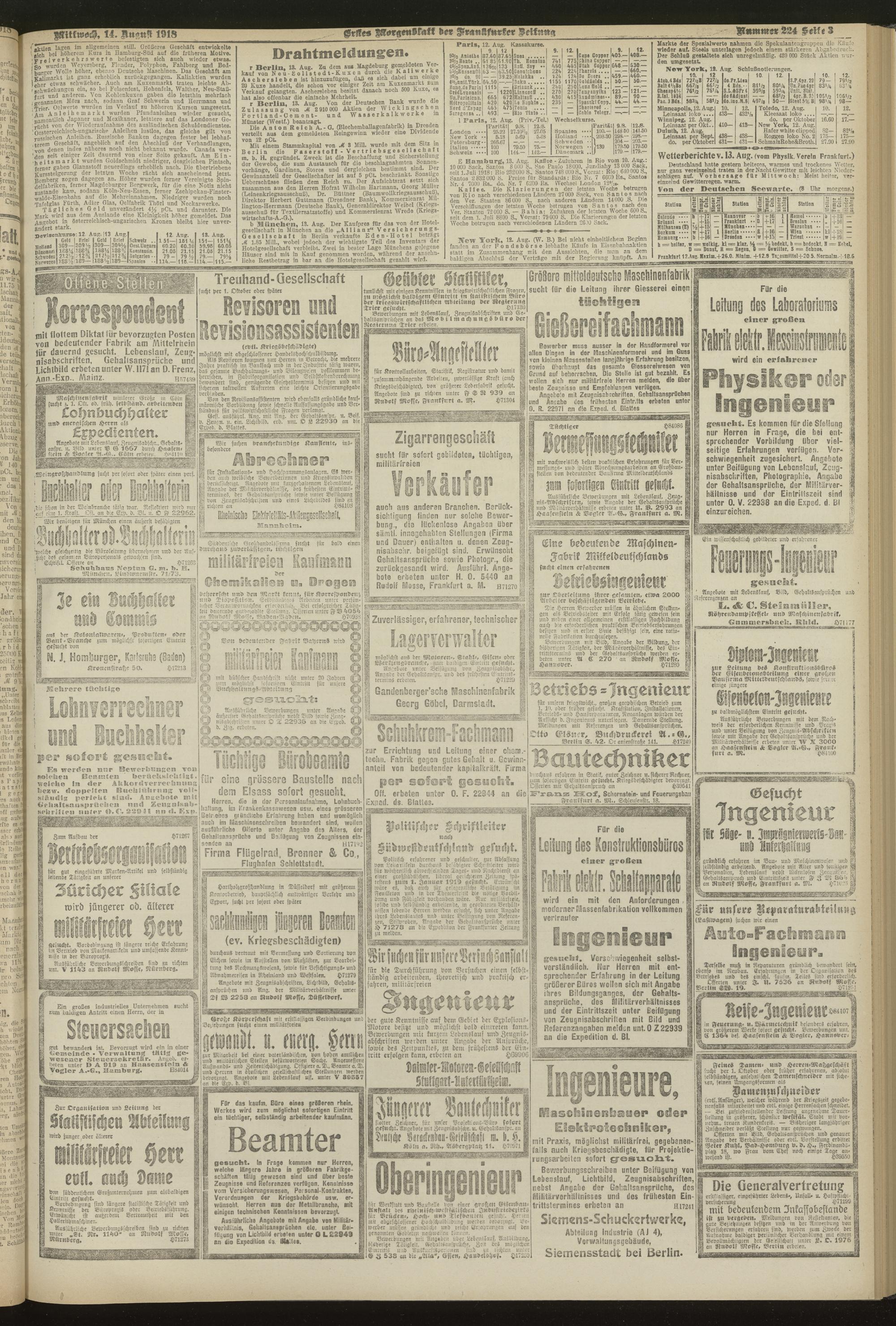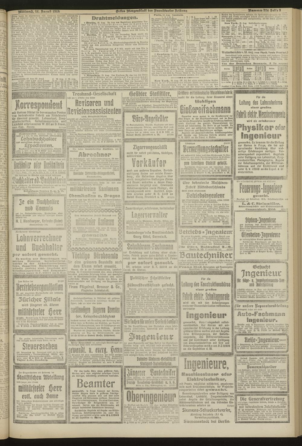 14.08.1918 = Nr. 224. Erstes Morgenblatt