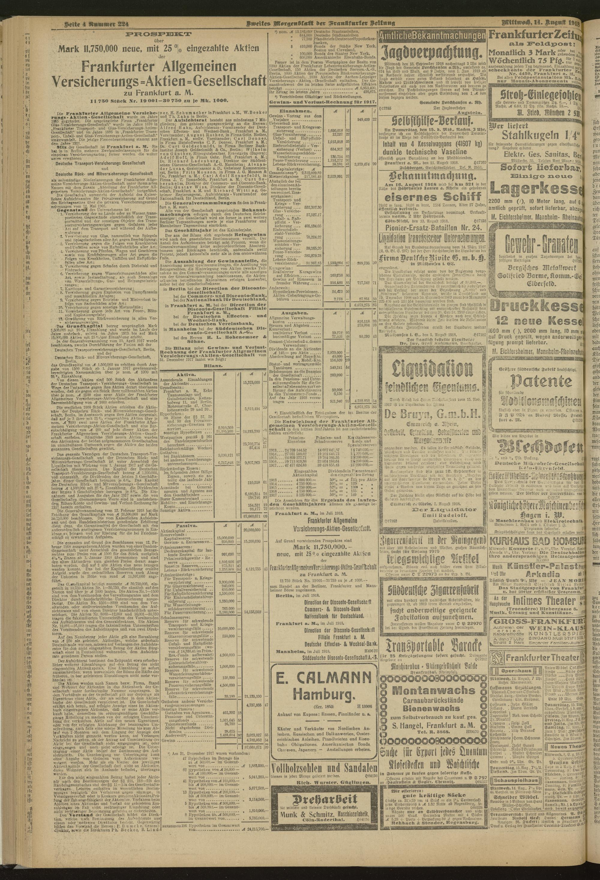 14.08.1918 = Nr. 224. Zweites Morgenblatt