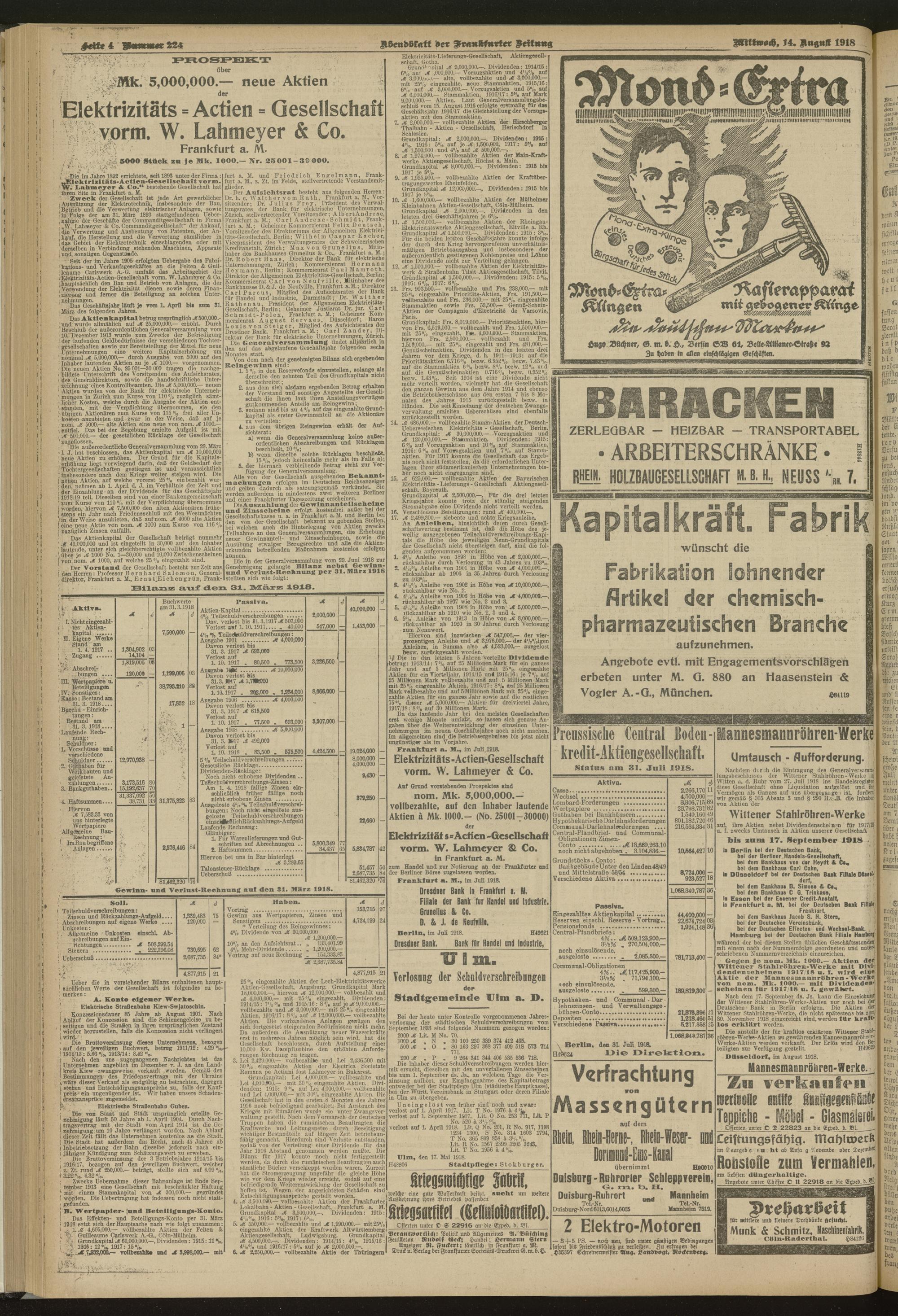 14.08.1918 = Nr. 224. Abendblatt