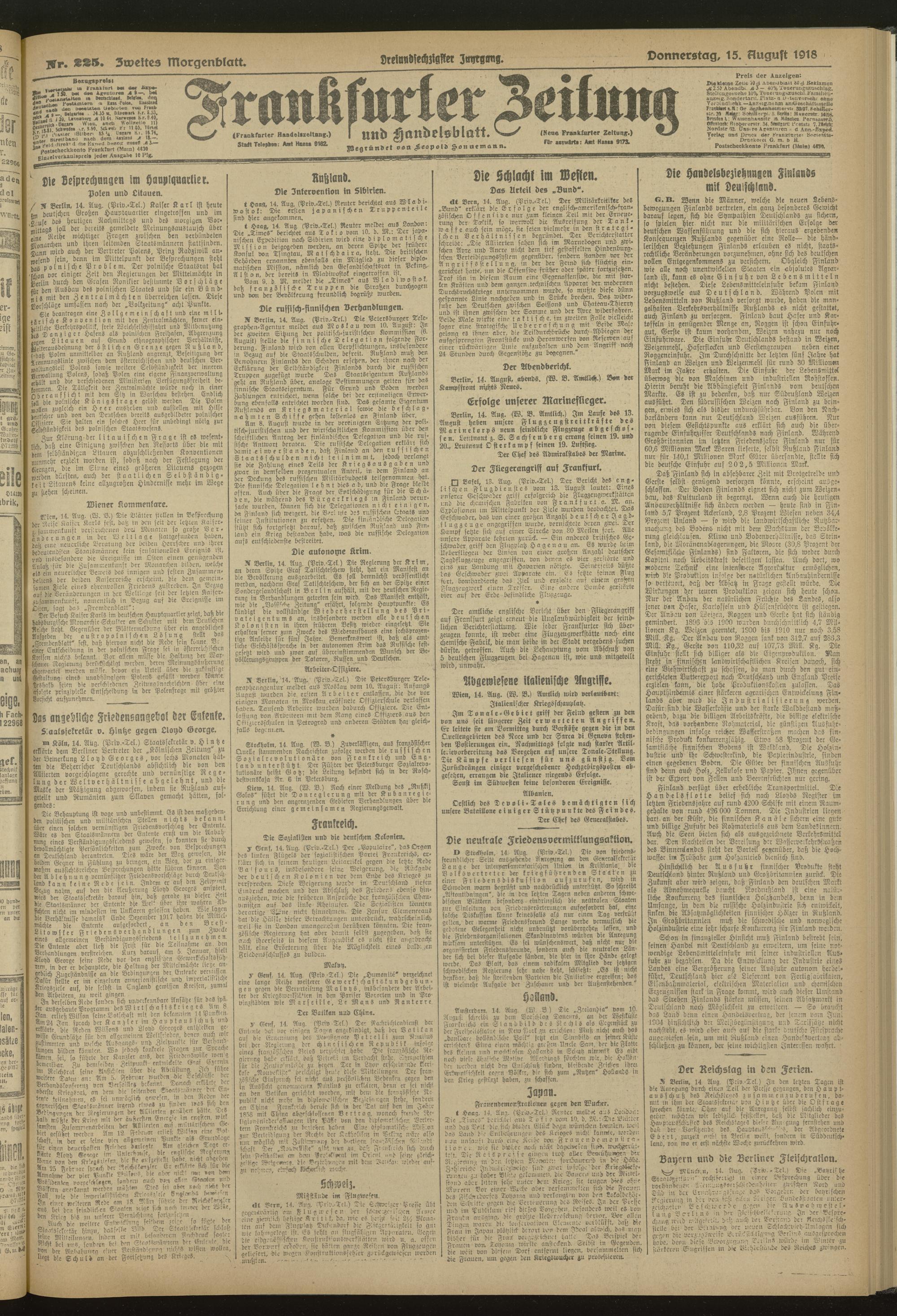 15.08.1918 = Nr. 225. Zweites Morgenblatt