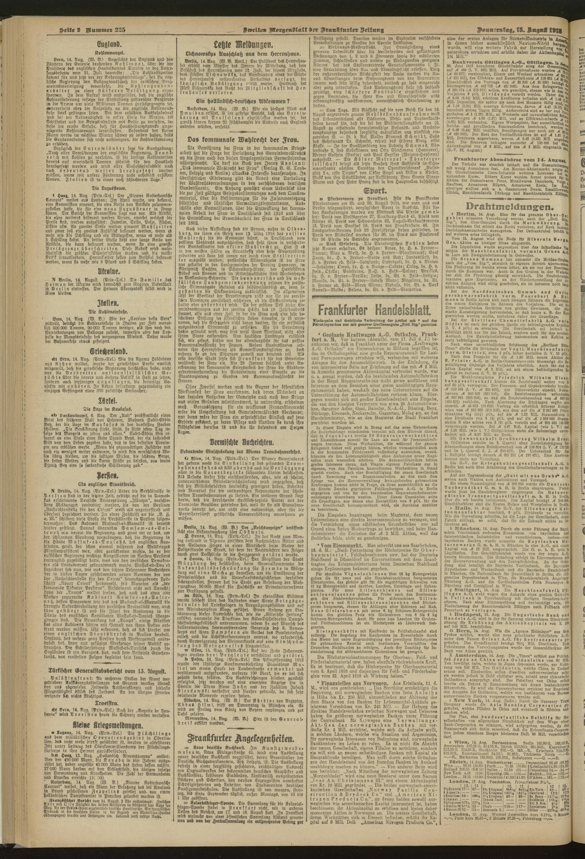 15.08.1918 = Nr. 225. Zweites Morgenblatt